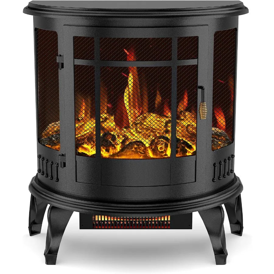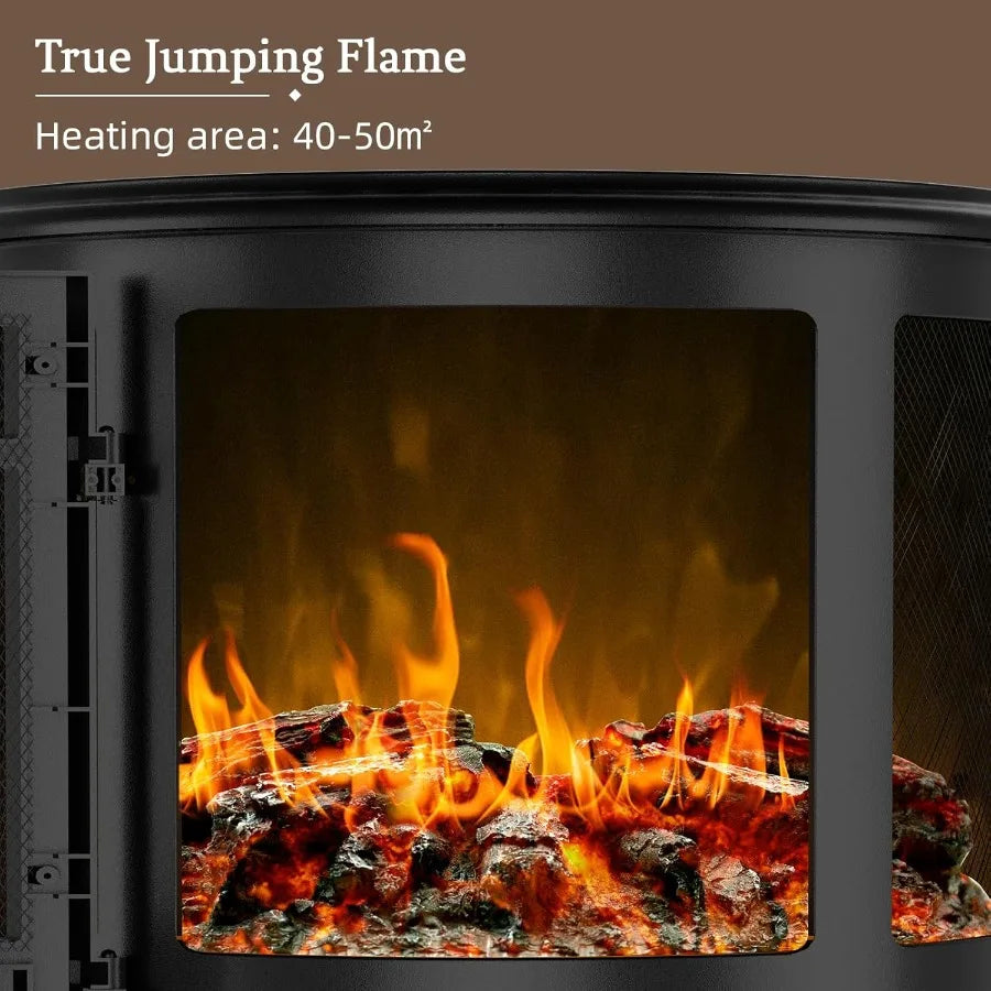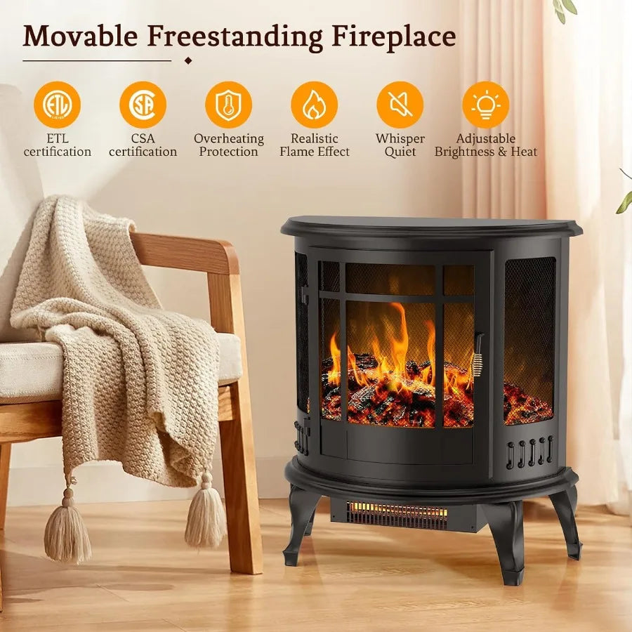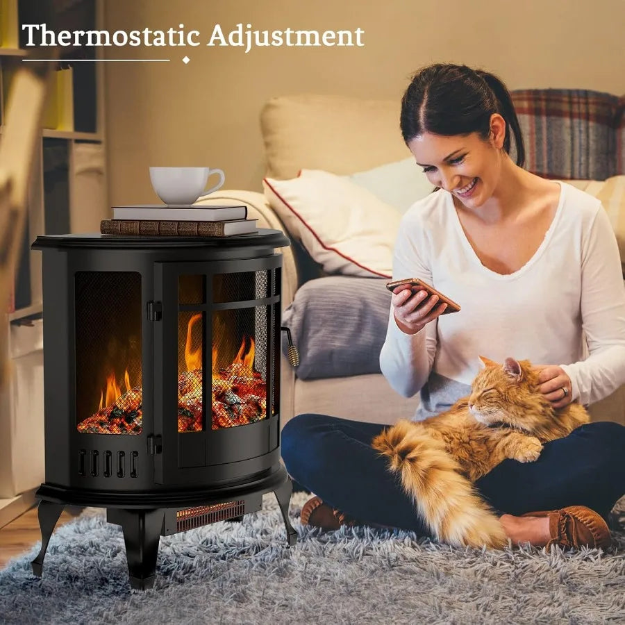 Electric Fireplace Heater Freestanding Stove with Flame Overheating Protection - Portable