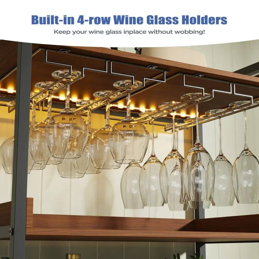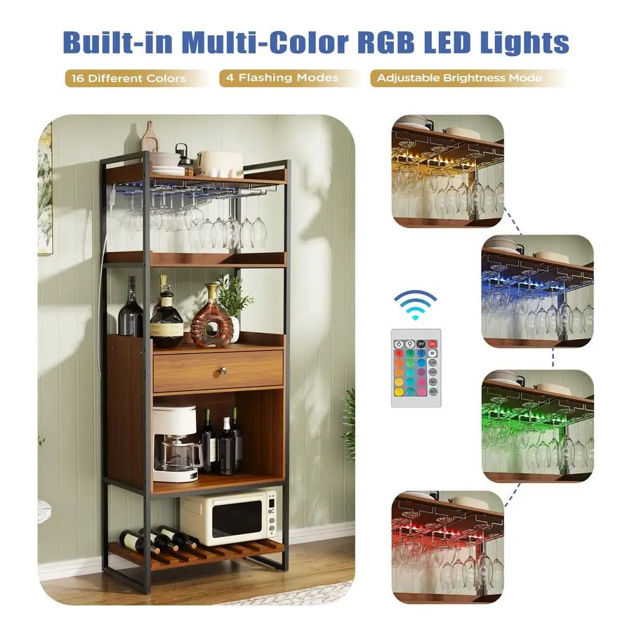 Bar Cabinet with Led Lights Industrial Tall Coffee