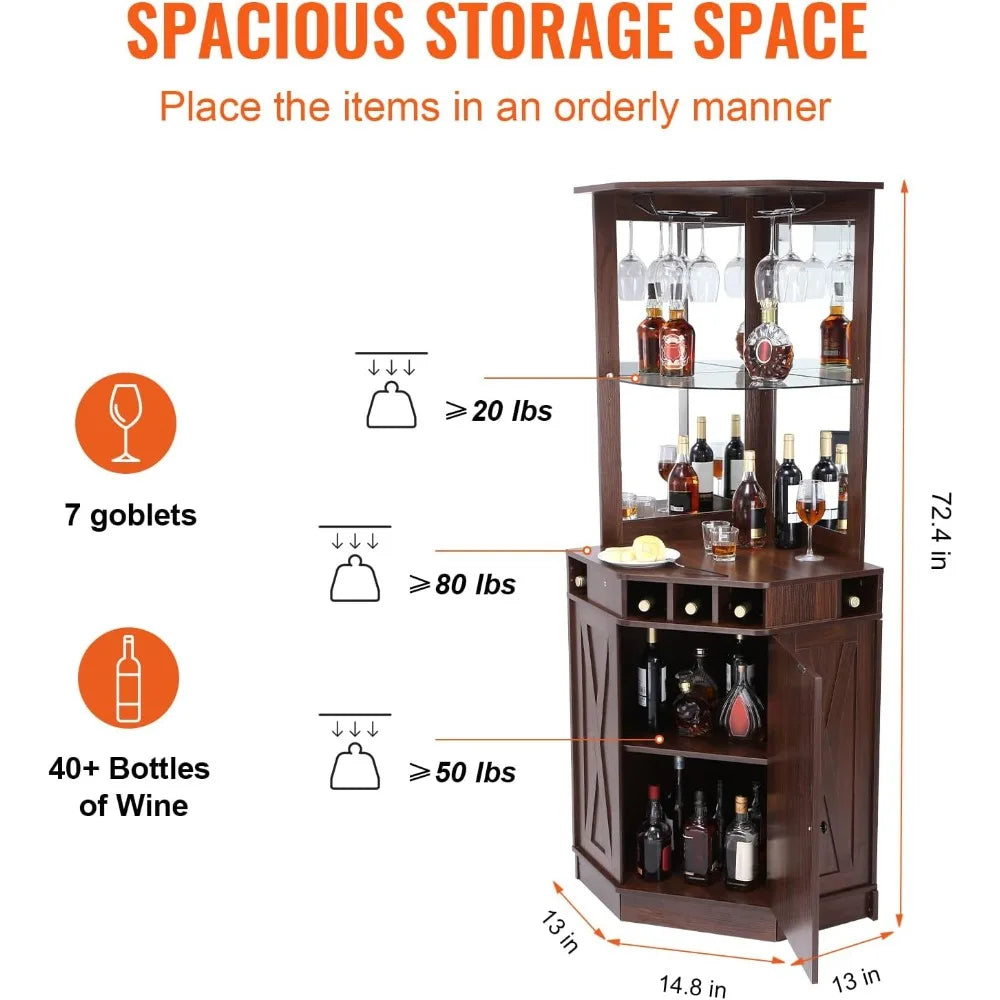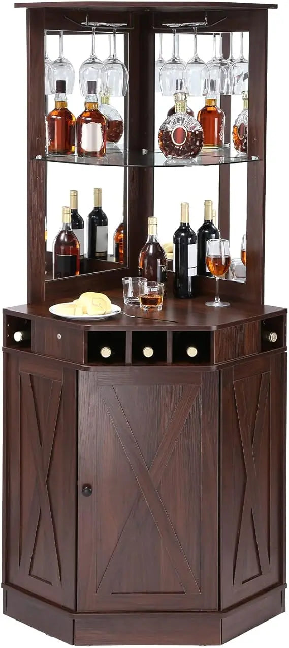 Corner Industrial Bar Cabinet Wine Table for Liquor Glasses