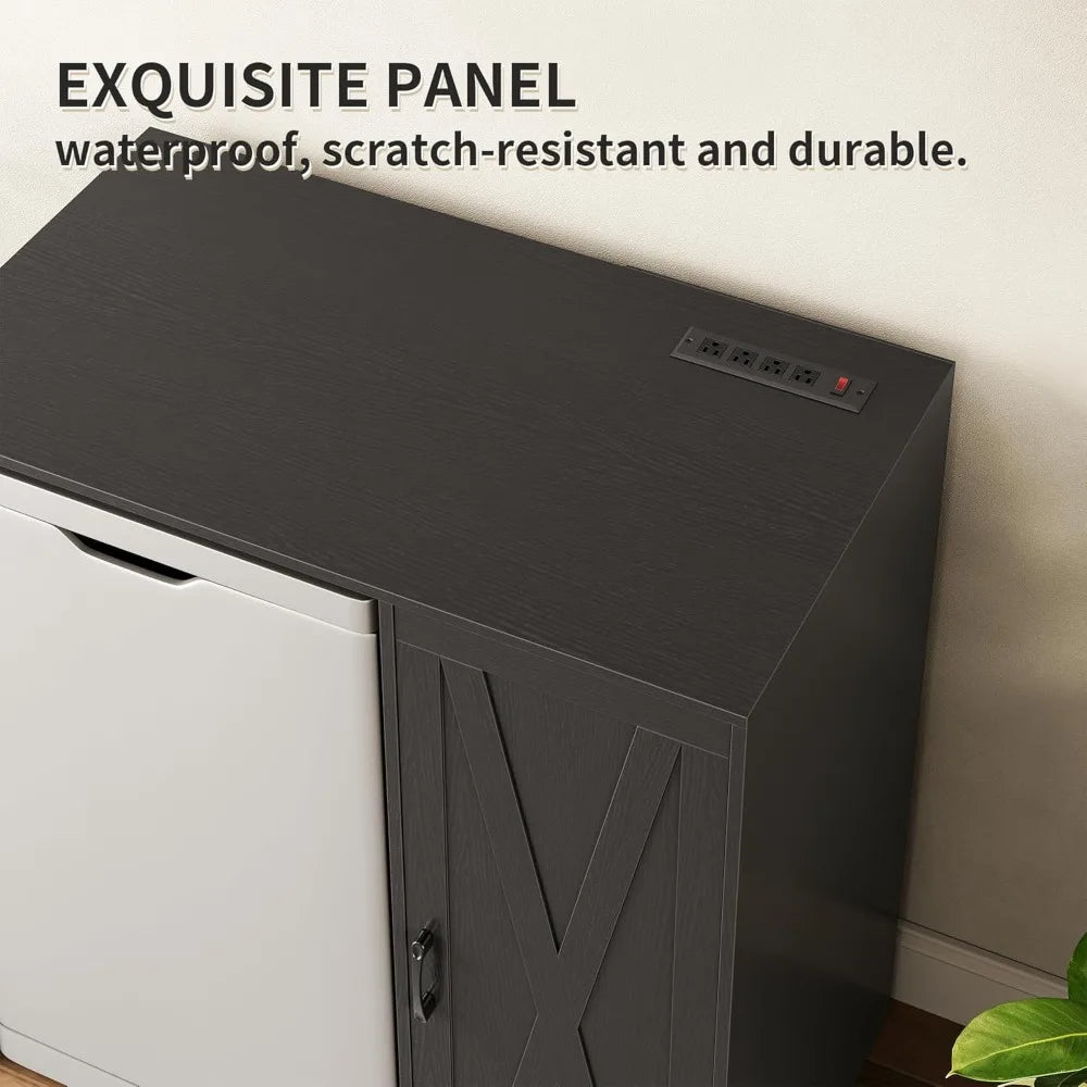 Mini Fridge Cabinet with Storage Coffee Bar Power Outlet