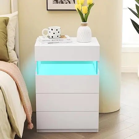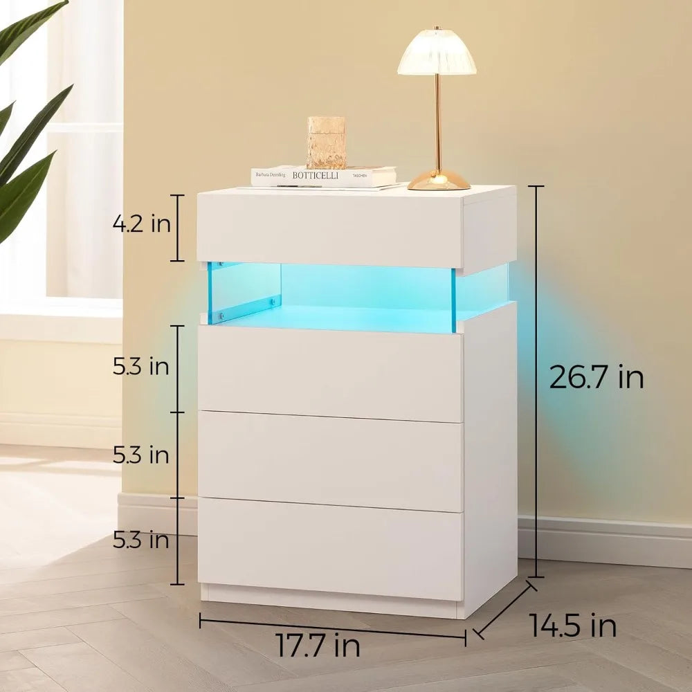 Contemporary Drawer Tall Nightstand with Led Lighting and Ample