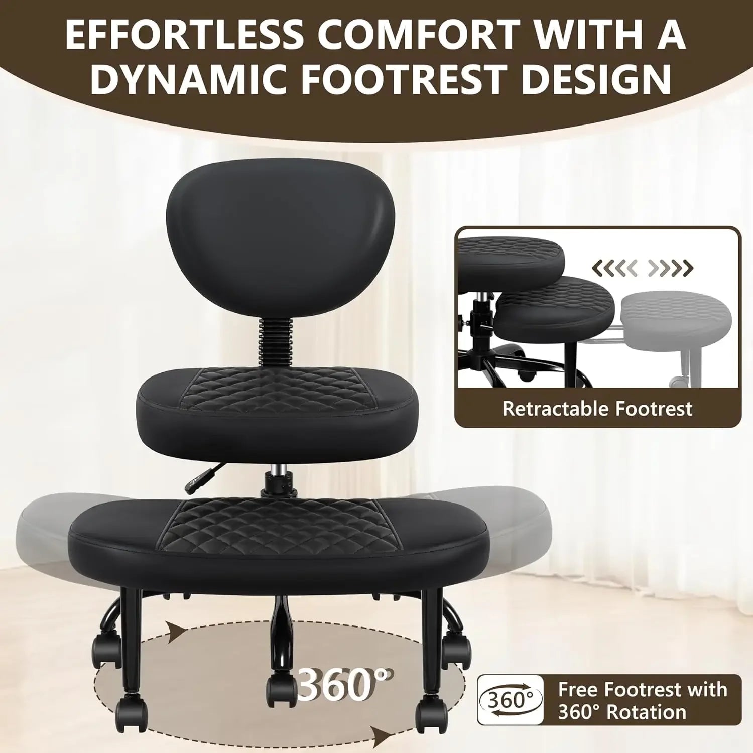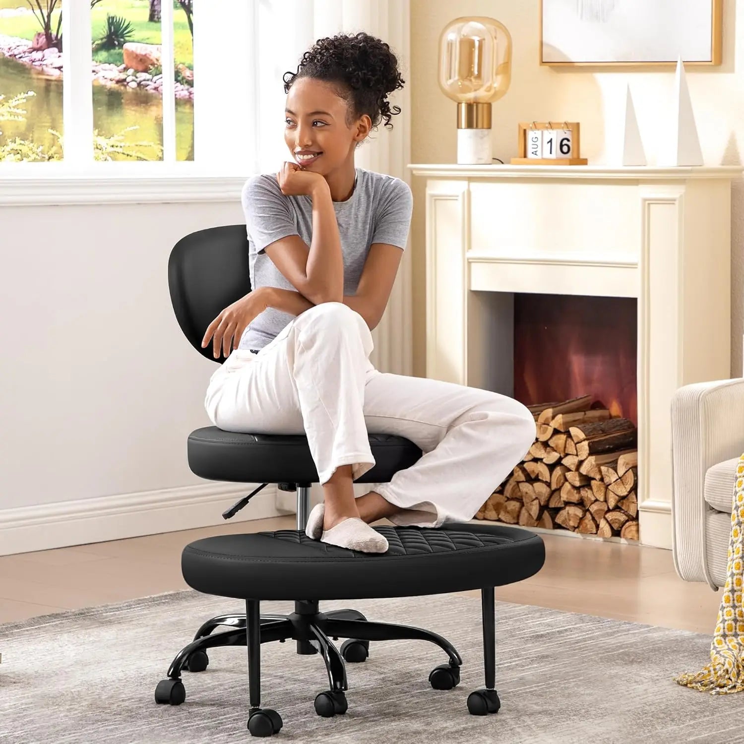 Ergonomic Cross Legged Office Chair with Wheels Adjustable Height