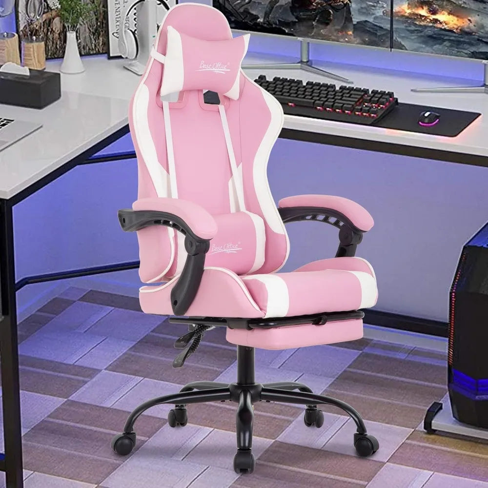 Ergonomic Racing Desk Chair Computer Gaming with Footrest Lumbar