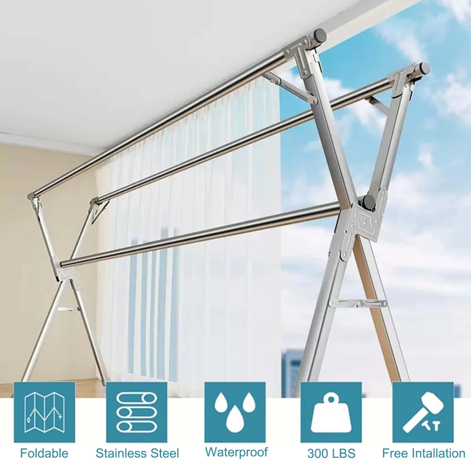 【Sturdy and durable】Our drying rack is made of top 201 stainless steel, which ensures the super sturdiness and excellent durability of the drying rack. Whether indoors or outdoors, it will stand the test of time and provide you with a long-lasting and consistent drying experience.