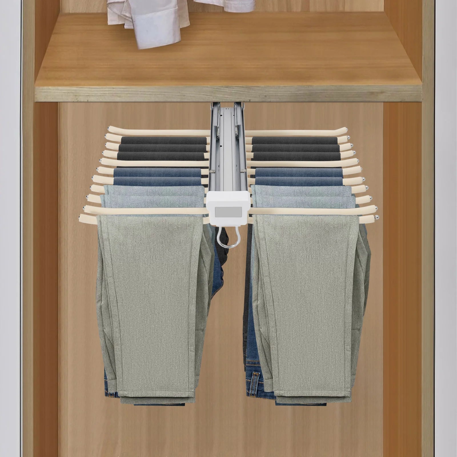 User-friendly: The silent double-button damping rail ensures smooth and silent gliding. At the same time, the rail design allows you to pull the rack out of the wardrobe to choose trousers when using, very convenient and applicable.