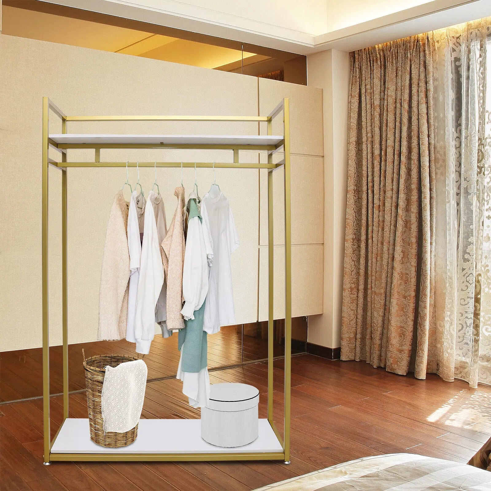 Easy To Install: This Freestanding Clothing Rack Comes With Installation Drawings To Help You Quickly Assemble. It's Very Lightweight And Easy To Move Where You Want.