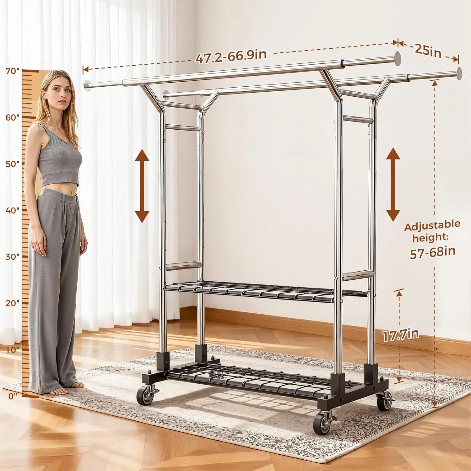 The 333", silver design of this organizers makes it a versatile addition to any room. The adjustable height lets you adjust it to your preferred height.