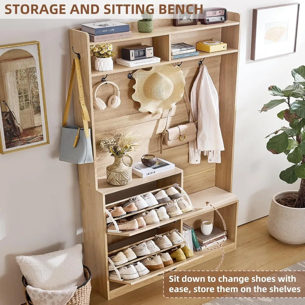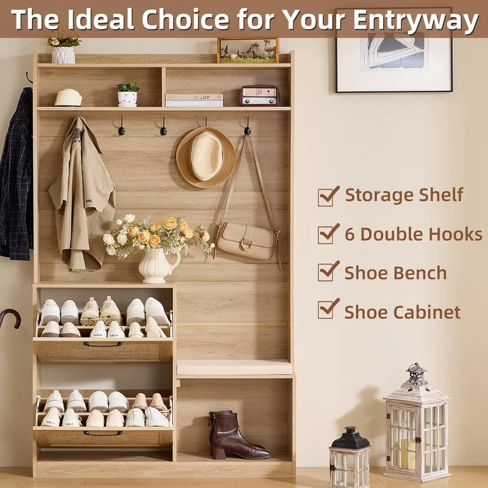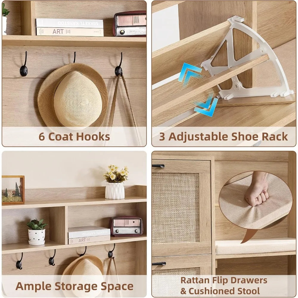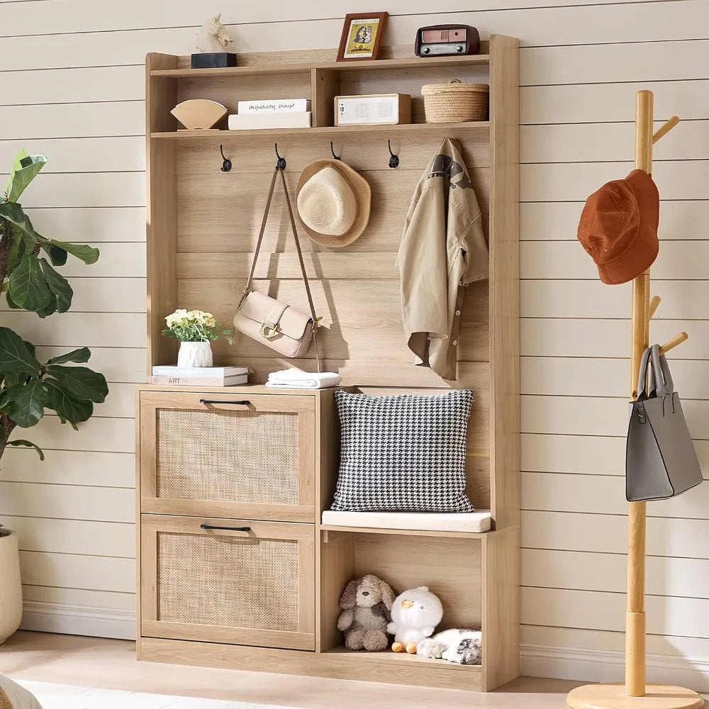 LEYAOYAO 4-Inch Tall Boho Hall Tree with Bench Shoe Storage