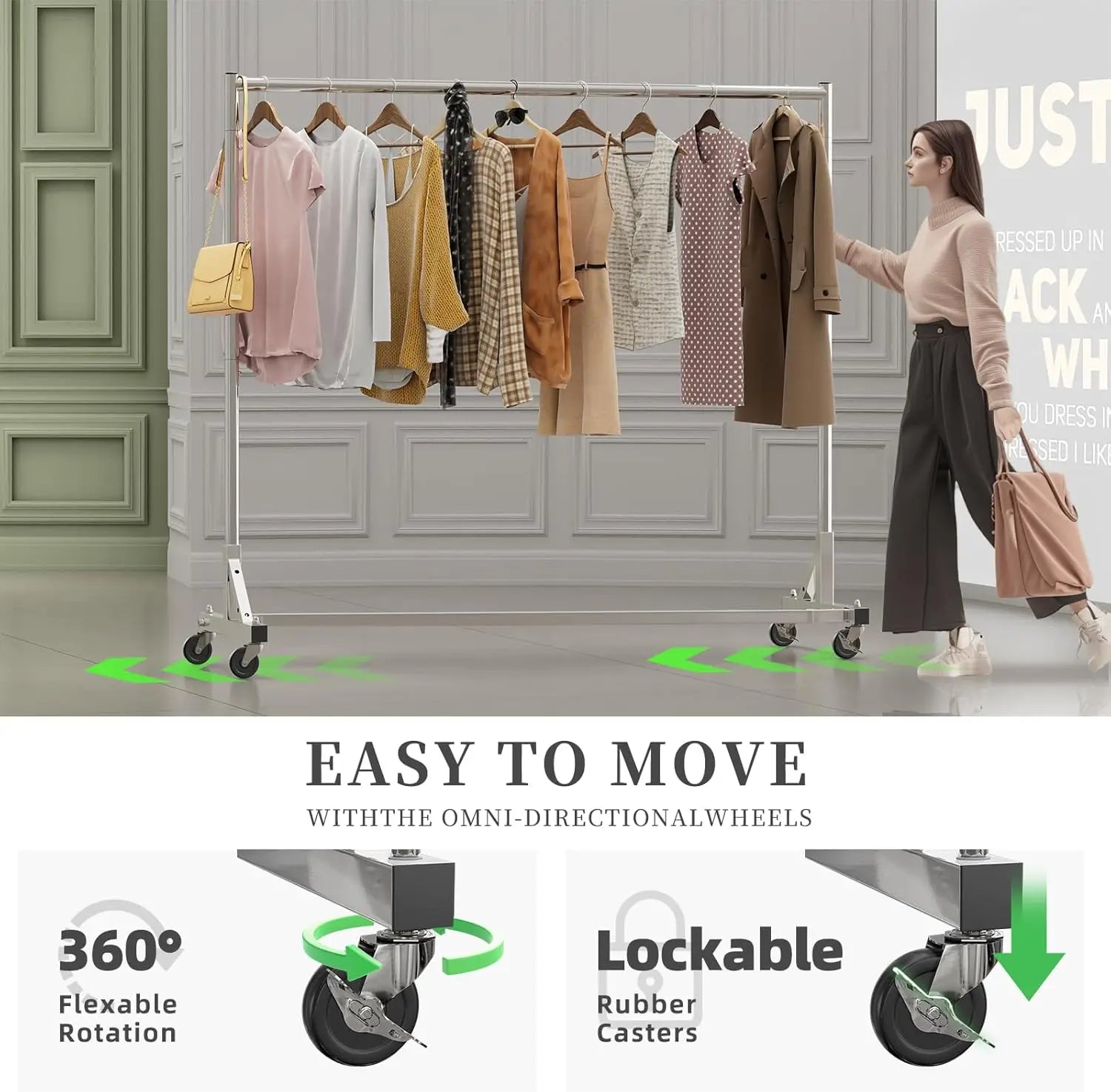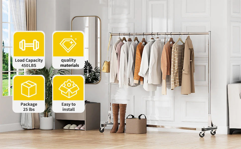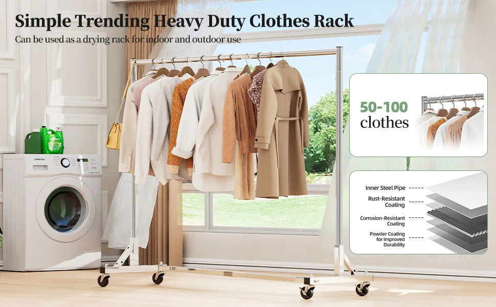 Simple Trending Industrial Grade Z Base 70in extra long Clothes Garment Rack, Commercial Grade Rolling Clothing Rack