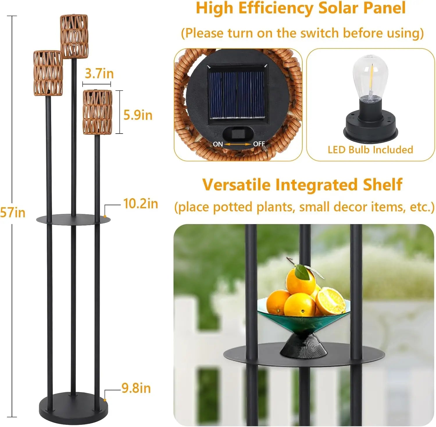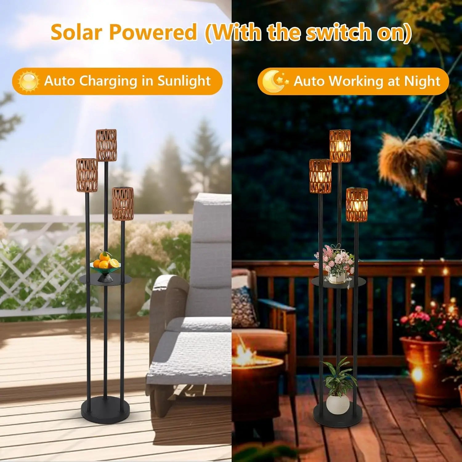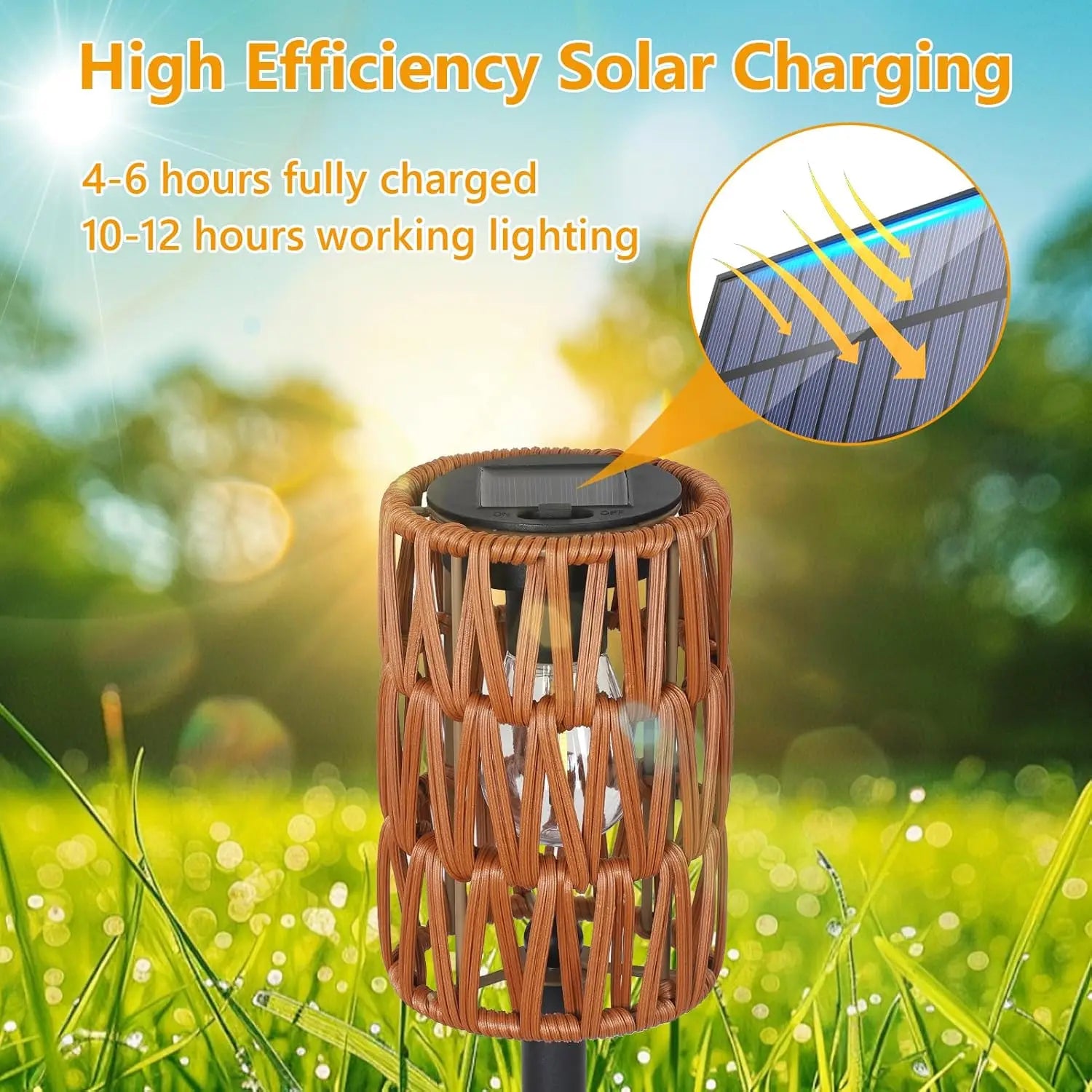 Solar Powered Outdoor Floor Lamp with Rattan Shade Waterproof