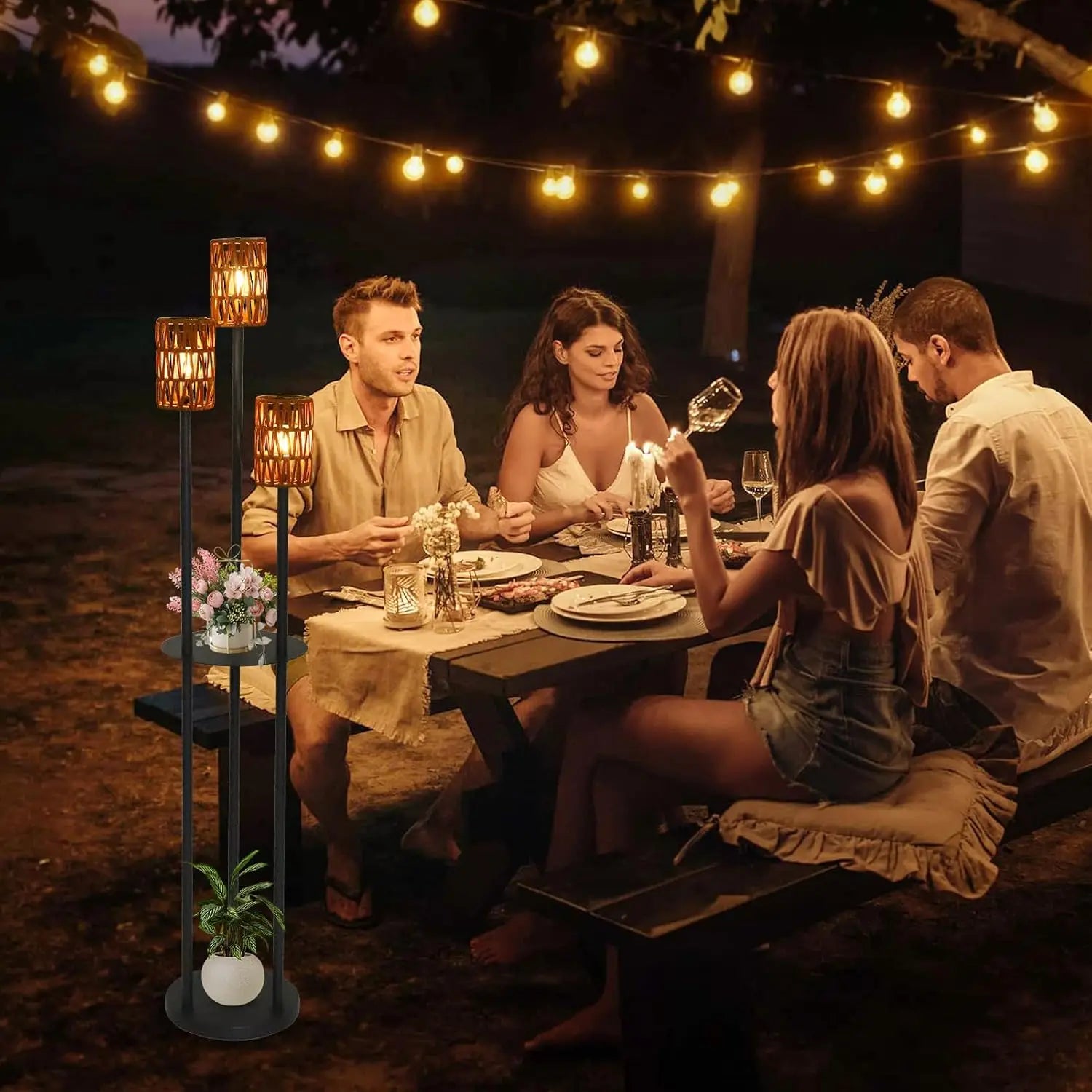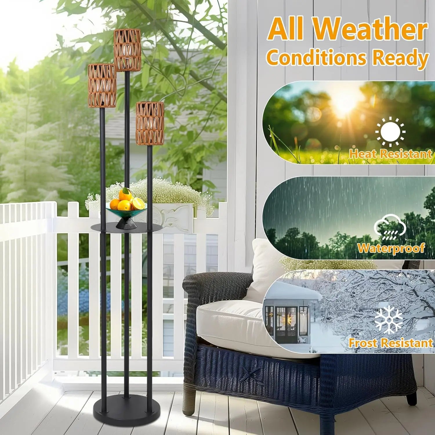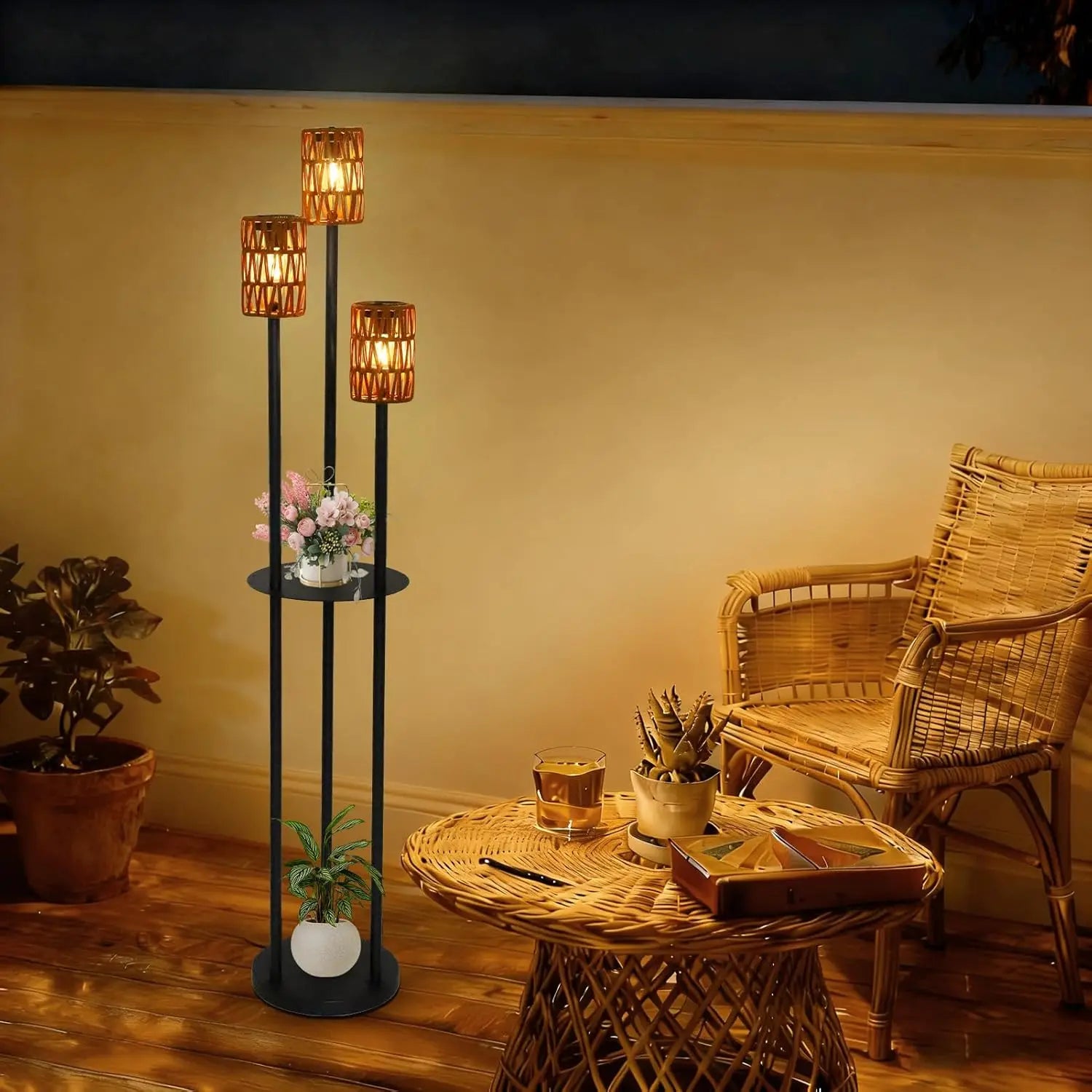 Solar Powered Outdoor Floor Lamp with Rattan Shade Waterproof