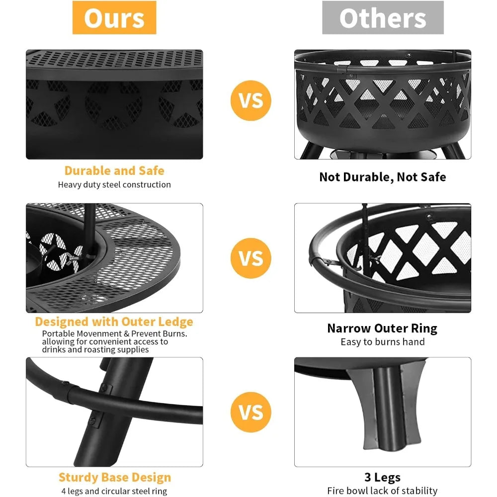 Inch Outdoor Wood Burning Fire Pit with Cooking