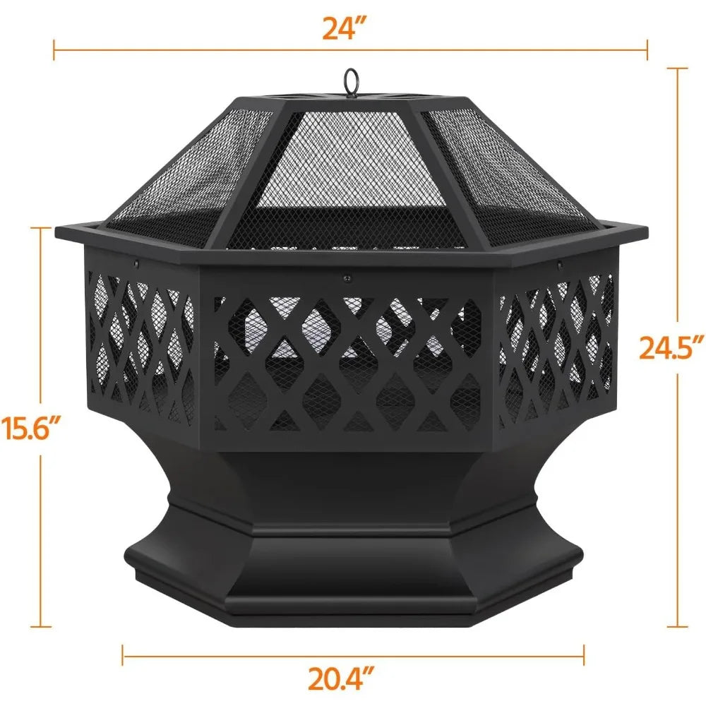 Hexagonal Outdoor Fire Pit Bowl Inches with Spark Screen