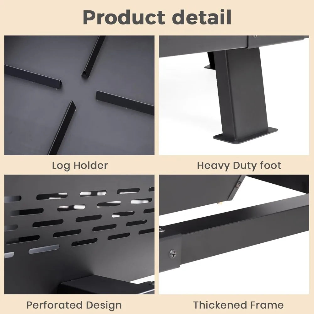 Large Square Outdoor Fire Pit with Poker Wood Burning