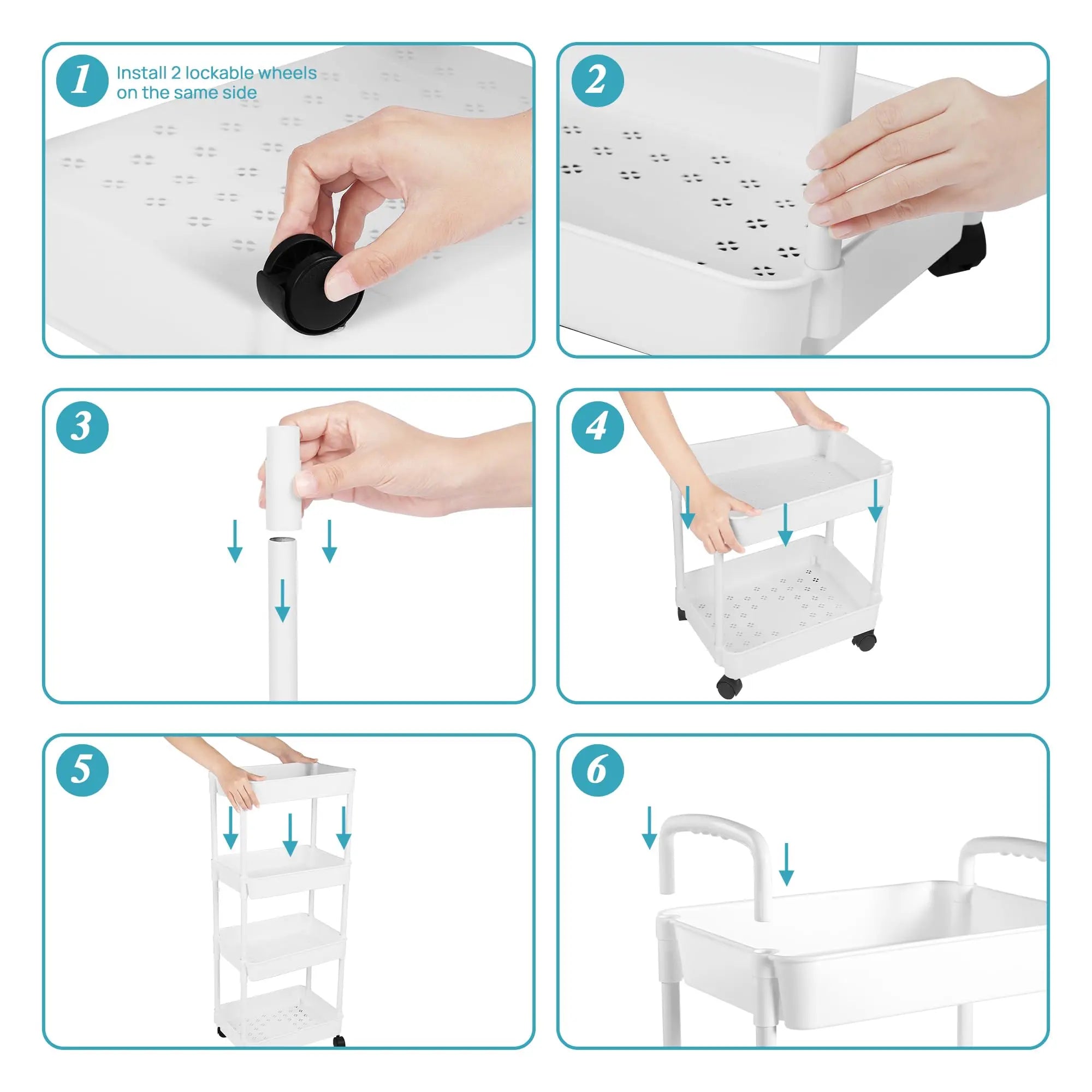 【Sturdy and large space】Each floor of the storage cart is composed of a sturdy plastic storage basket and 4 flexible wheels, and the widened storage space can place vegetables, fruits, snacks, drinks, tools, art supplies, toys, baby products , kitchen supplies, toiletries, office supplies, etc.