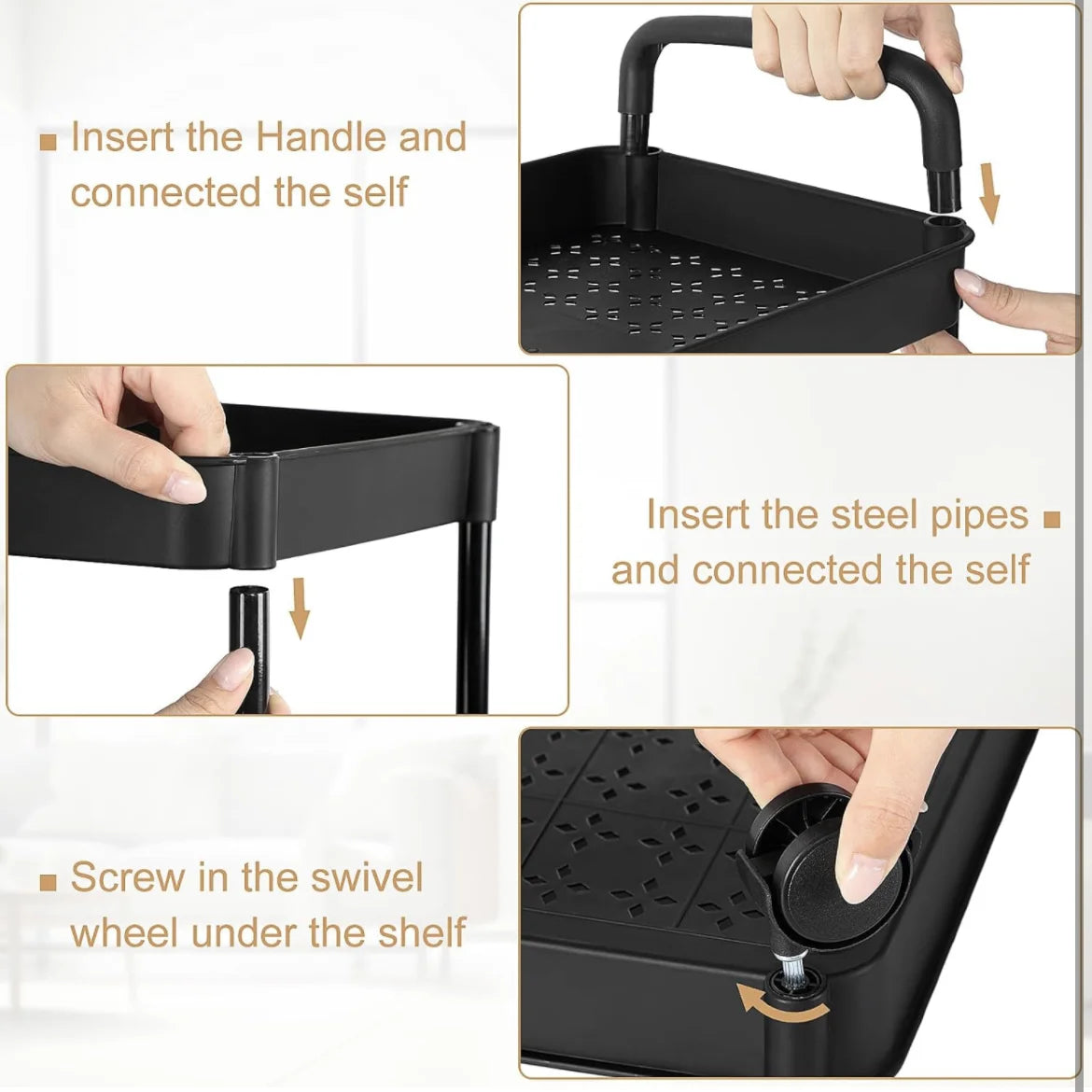 Multifunctional Use: This lash cart can be widely used in any situation, like the kitchen, living room, bathroom, bedroom, or storage room. It can hold a lot of things, like spice bottles, towels, books, and albums. Or you can also use it as a mobile food cart, or a mobile wine cart at a party.