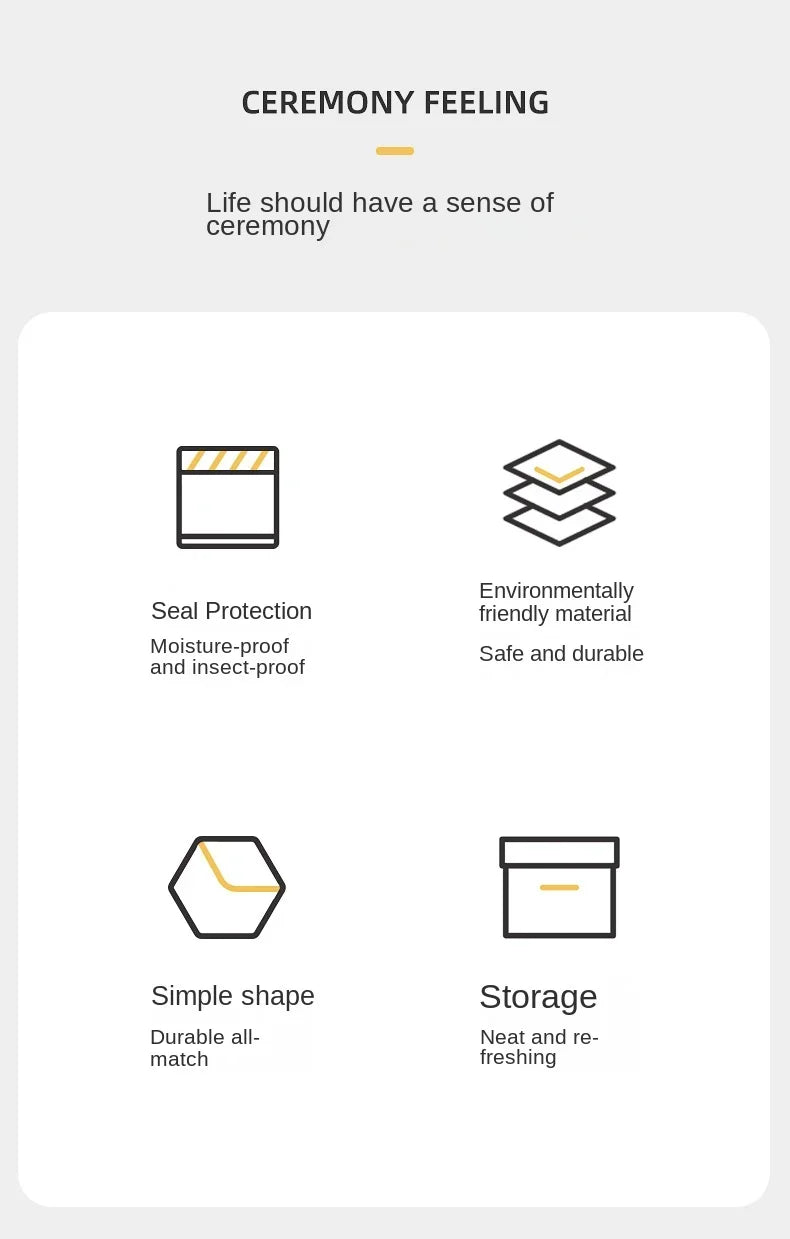 moistureproof, large capacity, space saving, easy to open, easy to clean