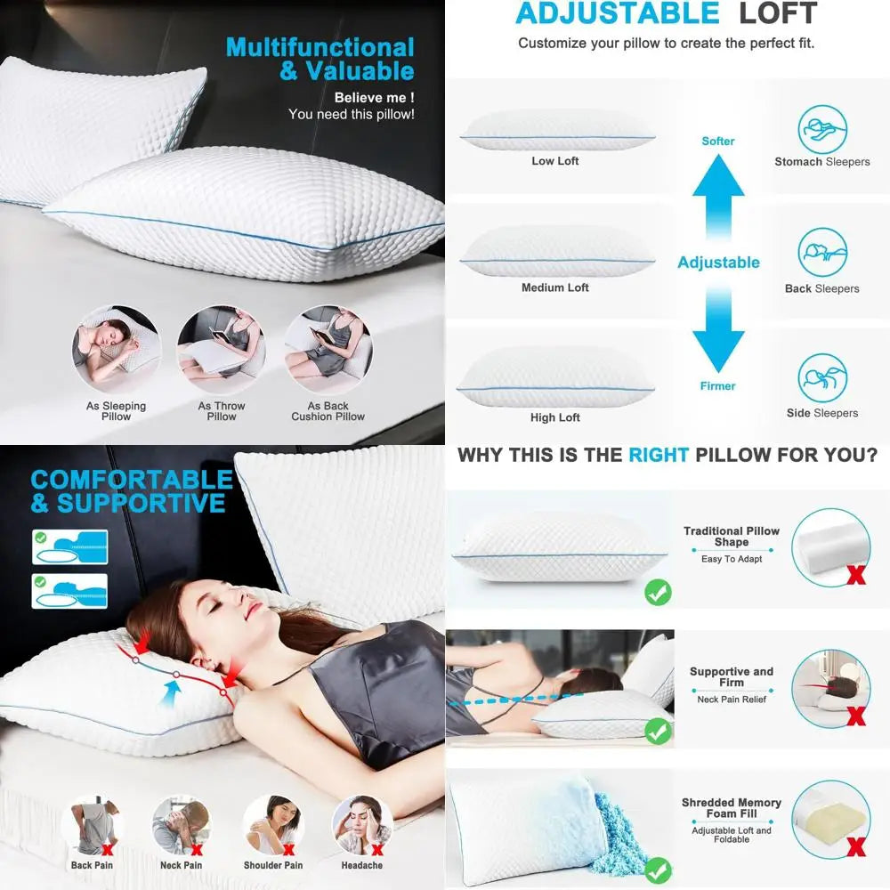 Queen Size Cooling Pillow Set Pack Shredded Memory Foam