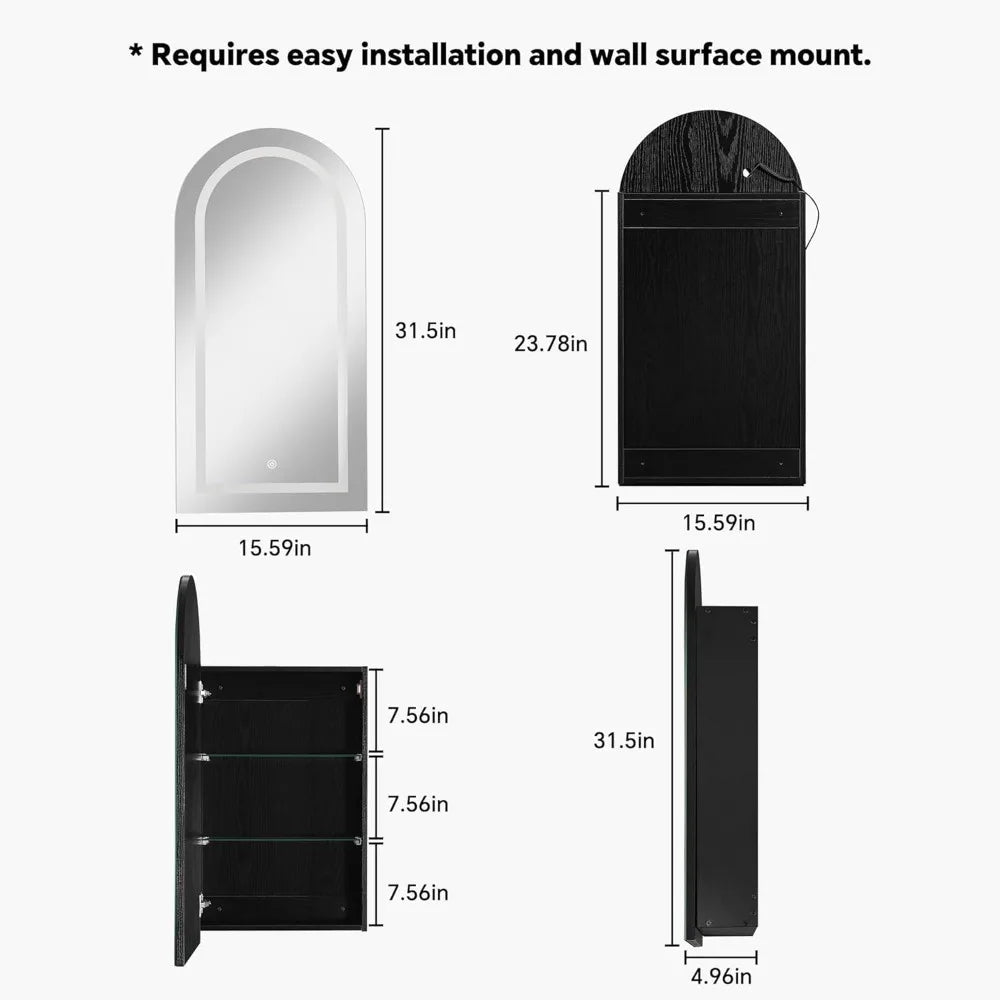 Led Illuminated Arched Medicine Cabinet Wall Mounted Black