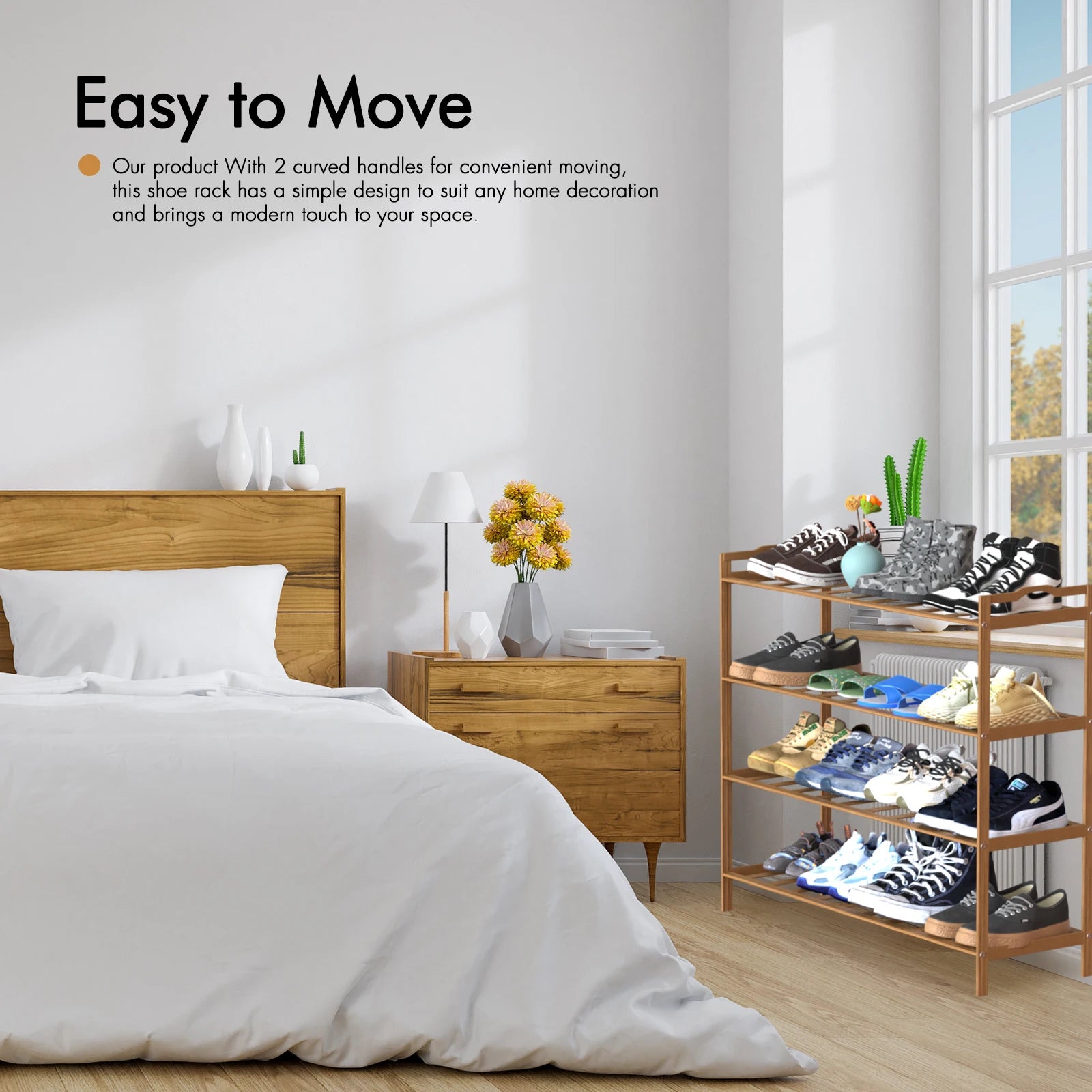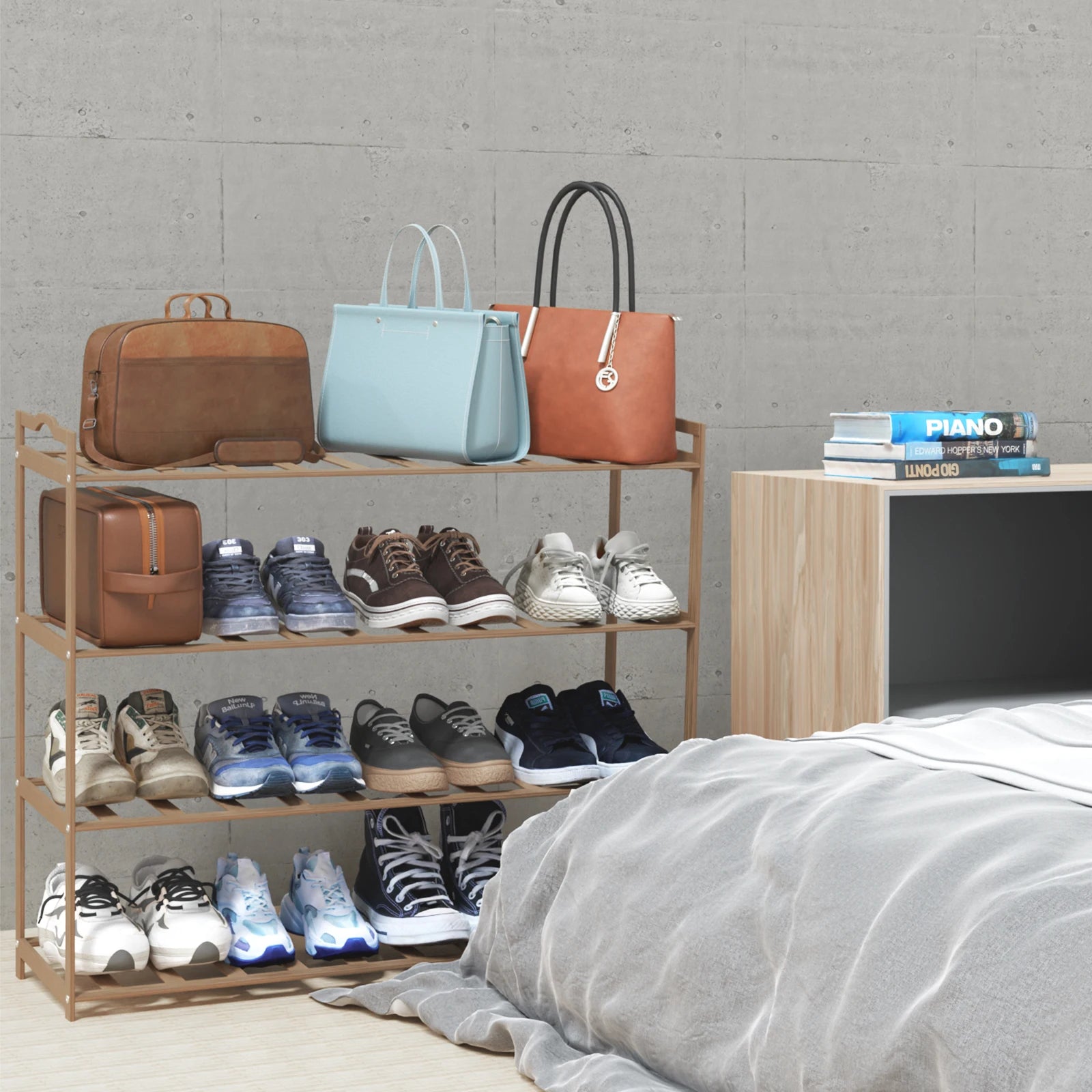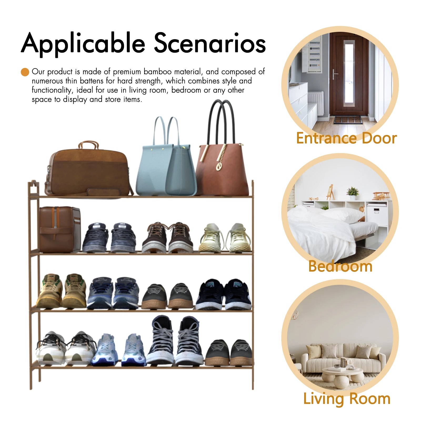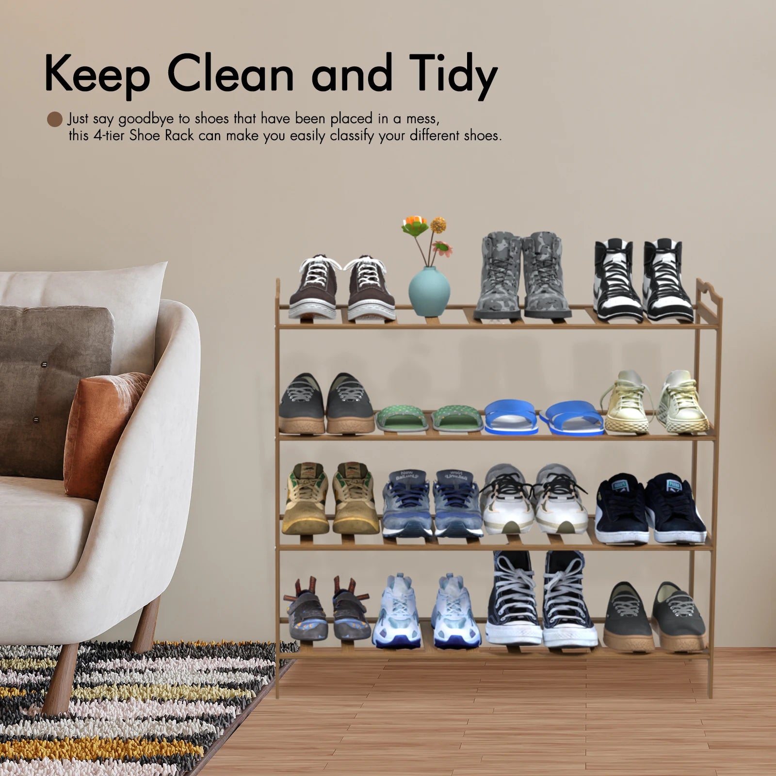 Tiers Shoe Rack Organizer Standing Tower Natural Bamboo Space