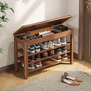 Mid Century Modern Tier Wooden Shoe Rack Bench