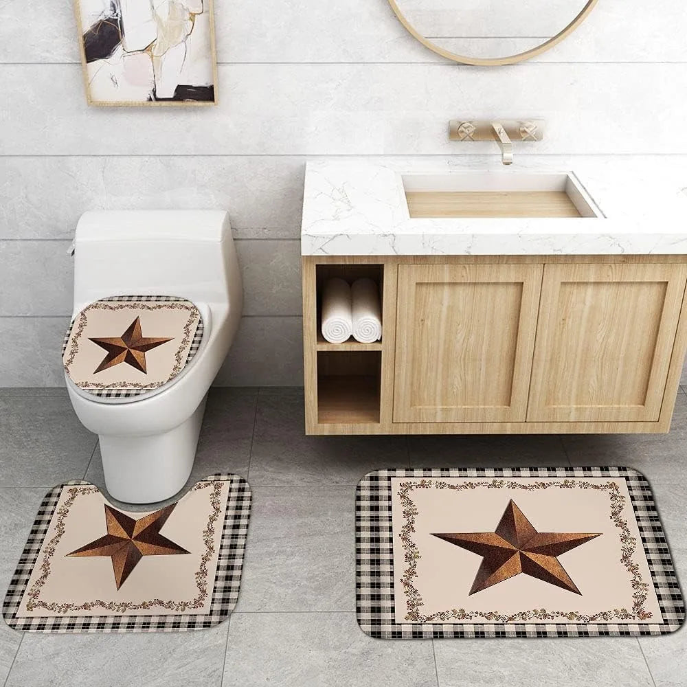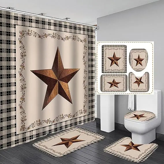 Piece Rustic Western Star Shower Curtain Set Black Beige
