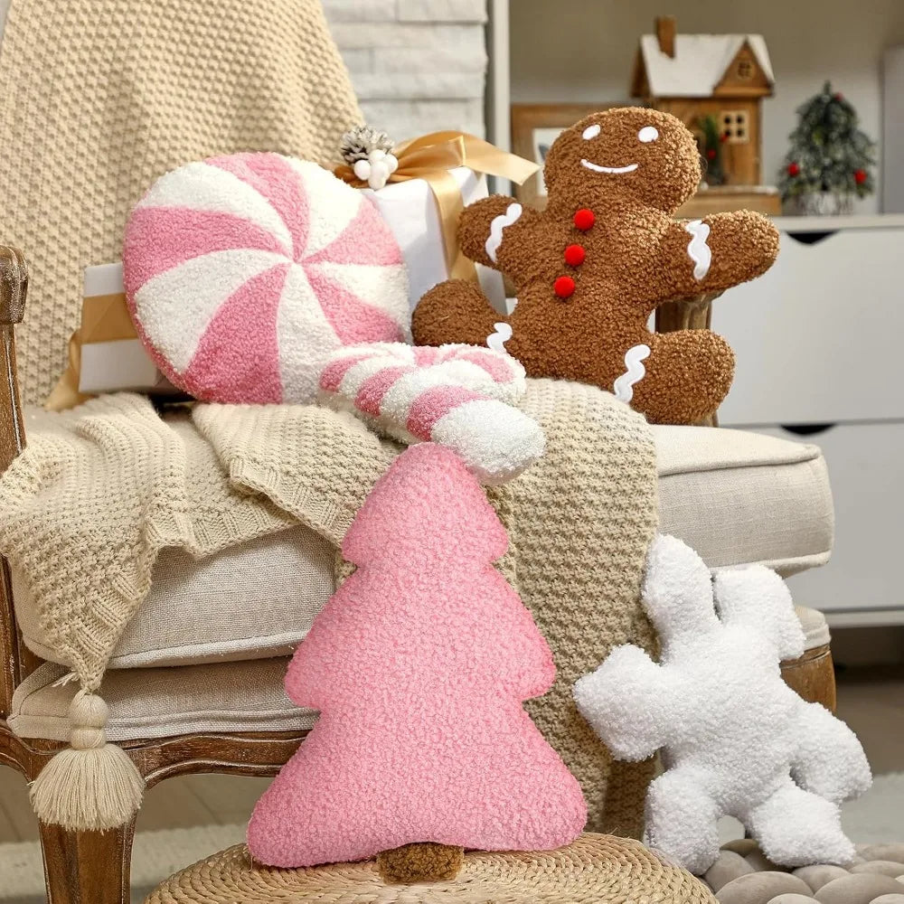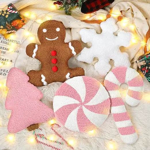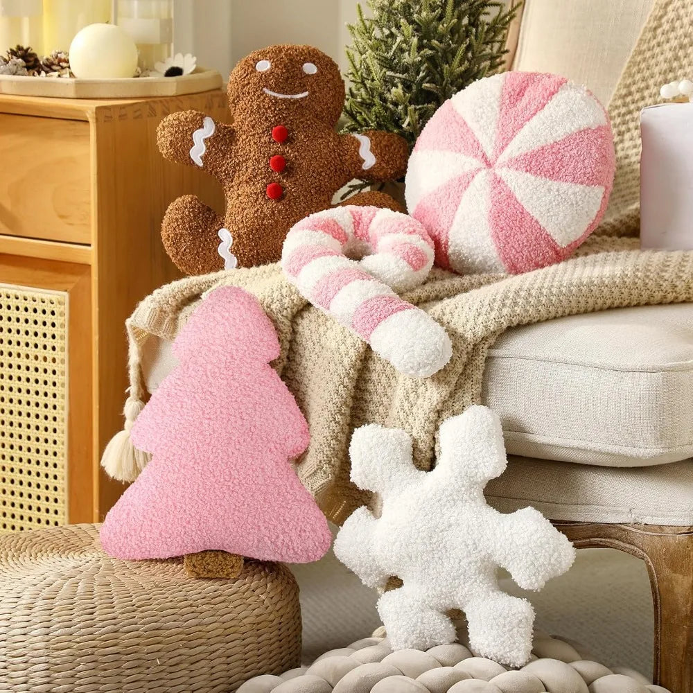 Christmas Decorative Pillows Set Tree Gingerbread Man Snowflake Stripe