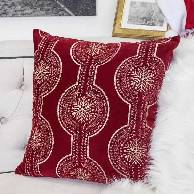 Red Velvet Throw Pillow 20x20 Inch Embroidered Holiday