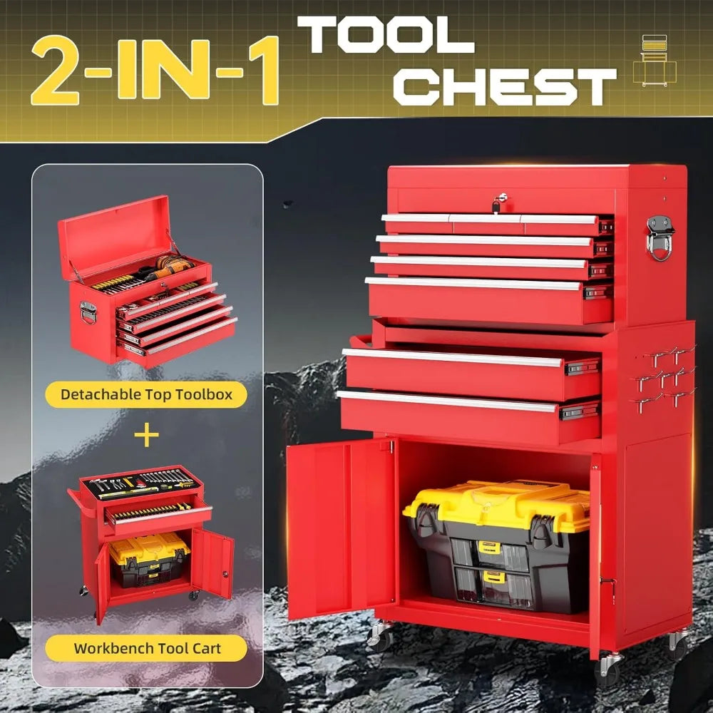 Rolling Tool Chest with Lock Detachable Cabinet Cart Wheels