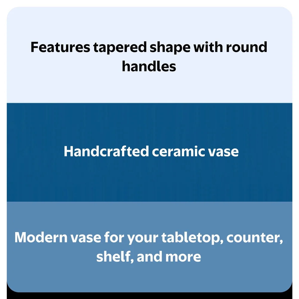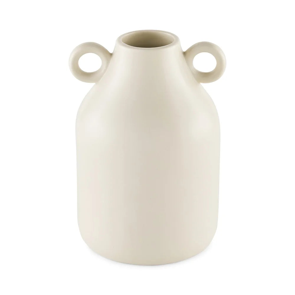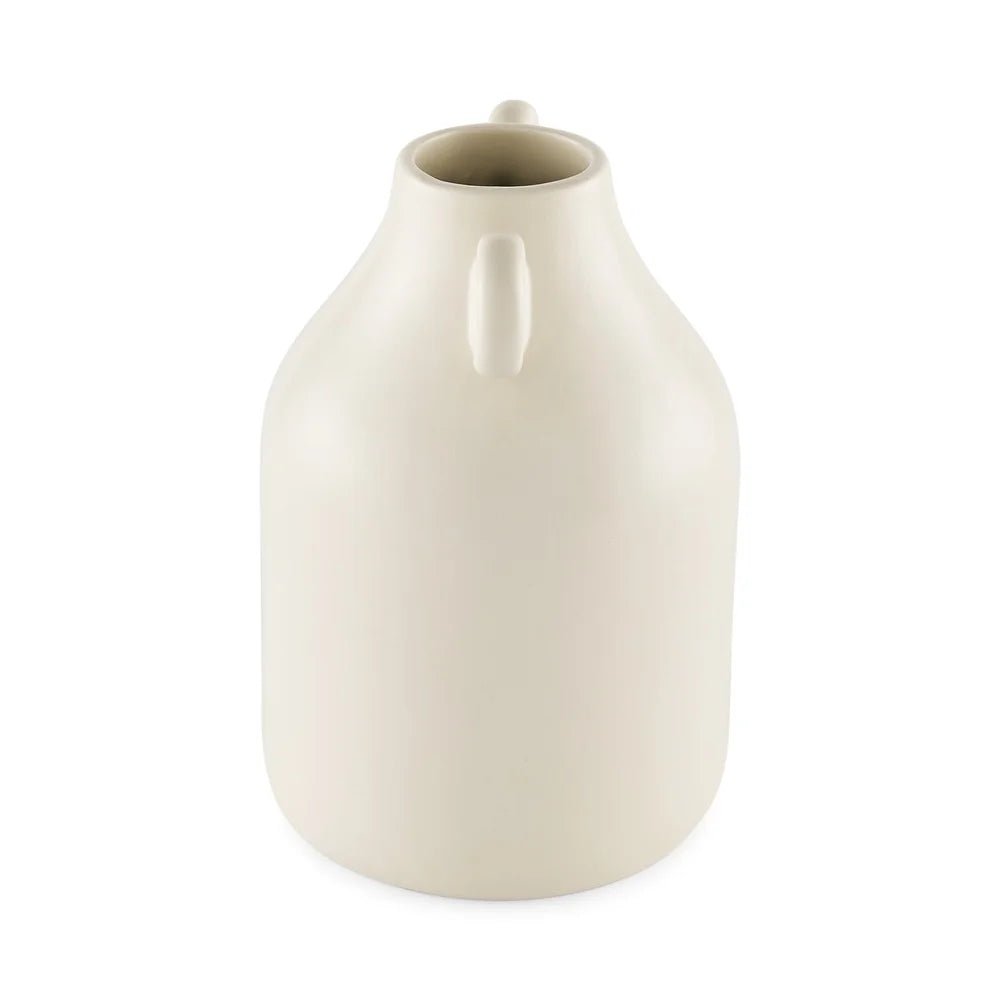 Handcrafted Ivory Ceramic Vase with Handles Decorative Tapered Design