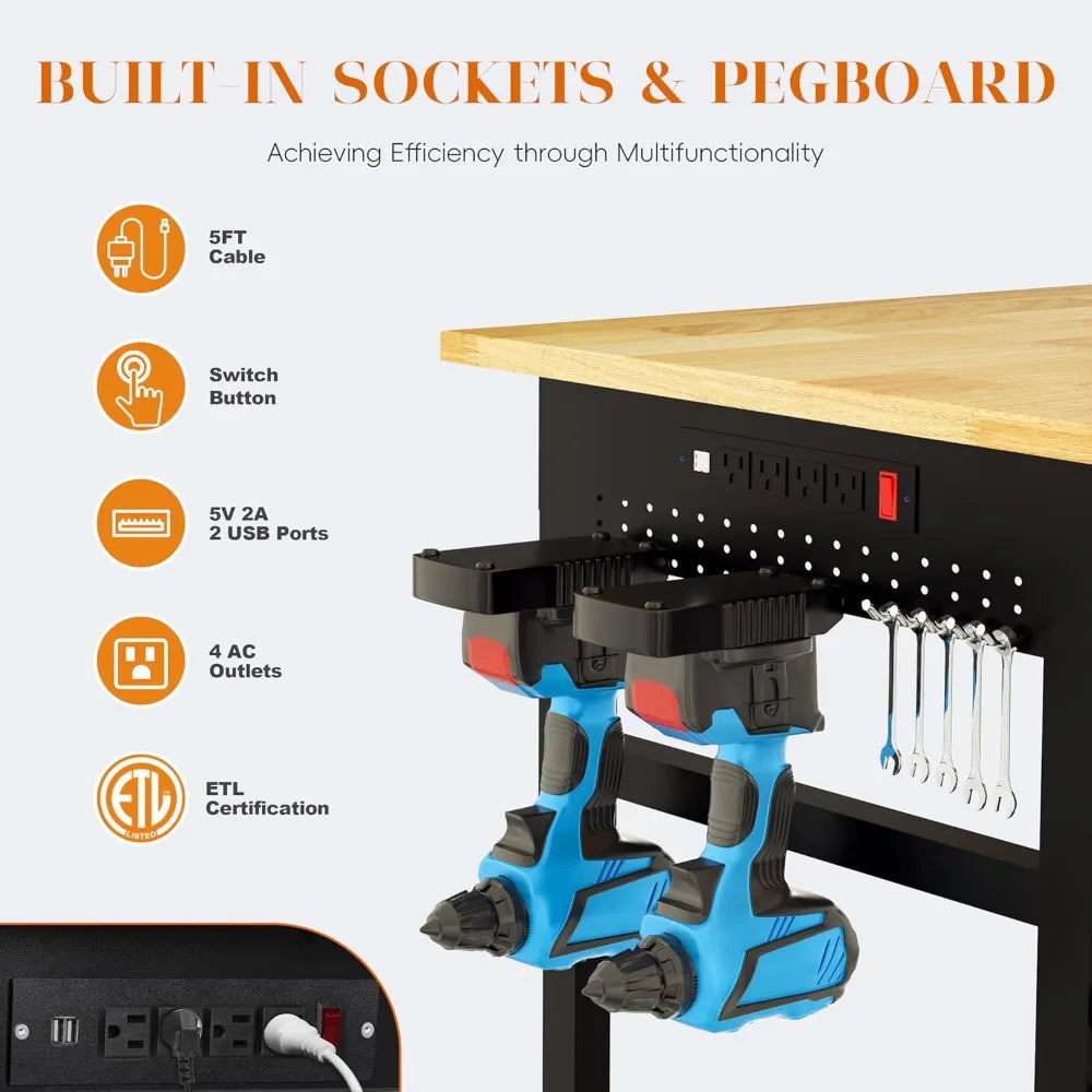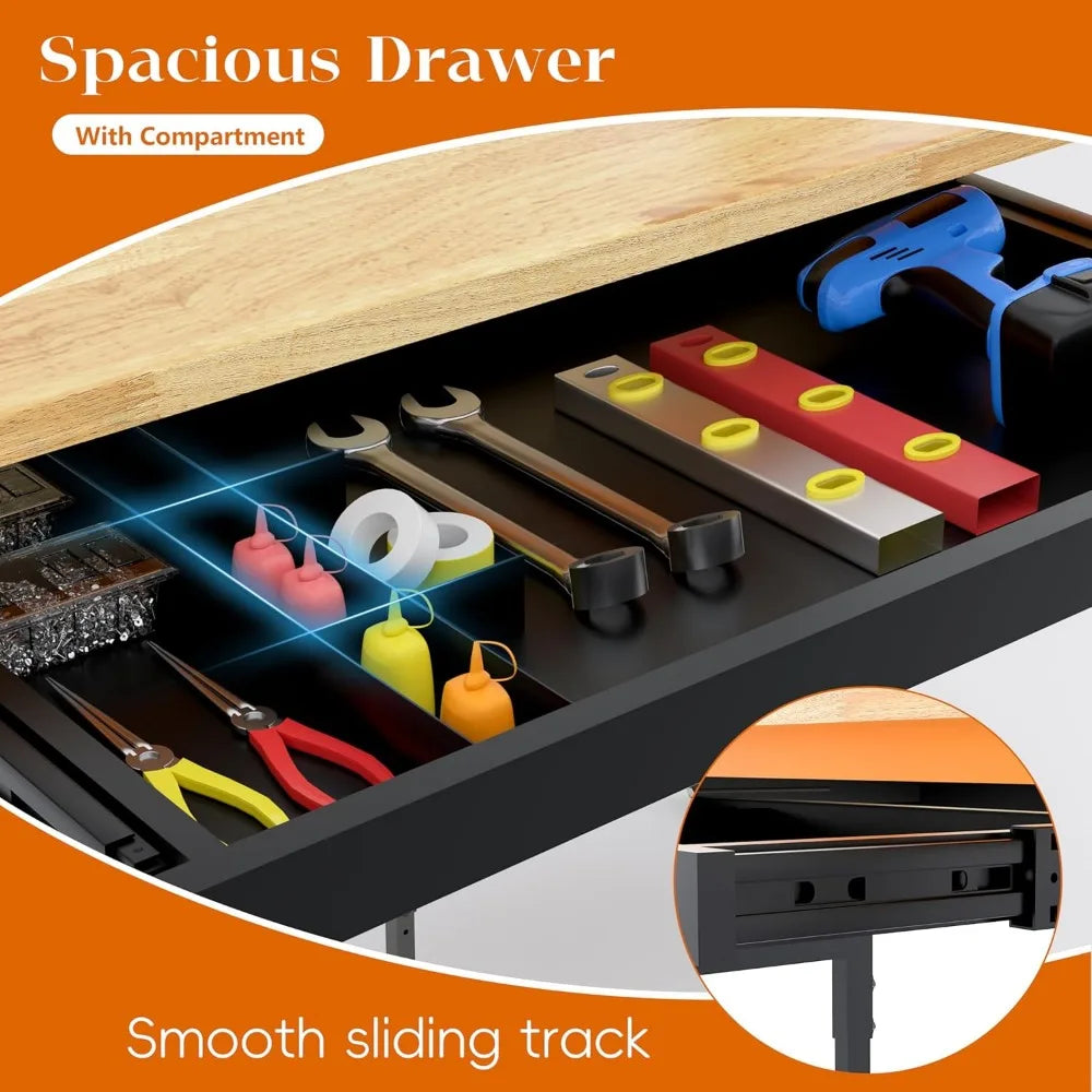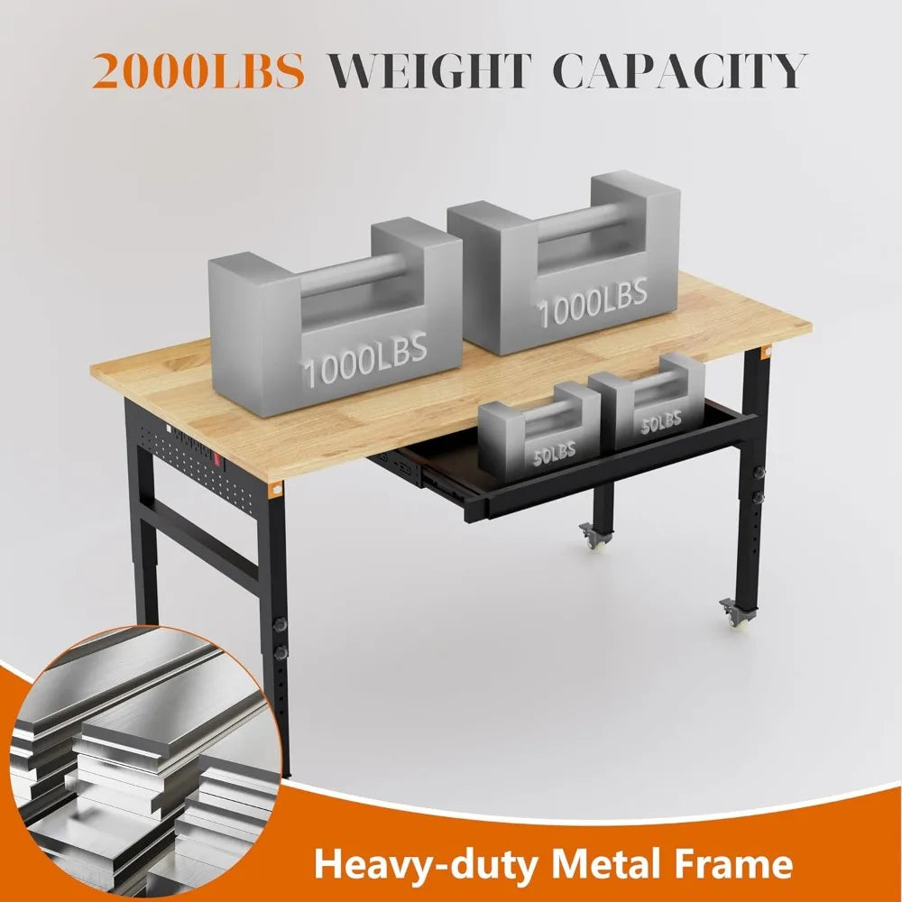 Adjustable Workbench Wheels Lbs Heavy Duty Work Table (60 x24) - Adjustable Height
