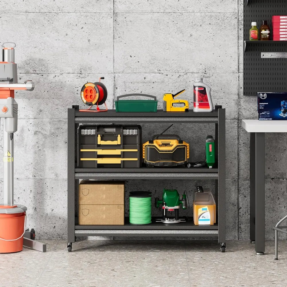 Heavy Duty Adjustable Metal Workbench with Wheels for Garage - Adjustable Height