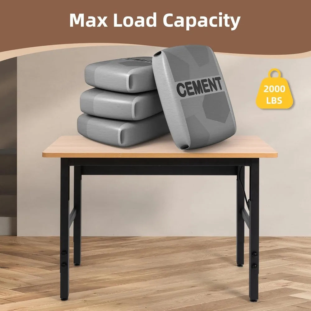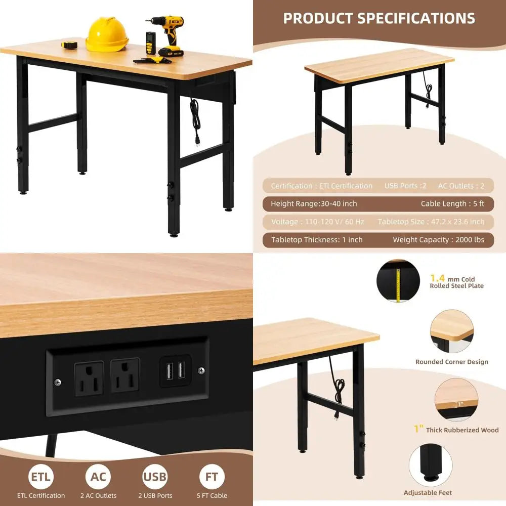 Heavy Duty Adjustable Workbench with Power Outlets Capacity Hardwood - Adjustable Height
