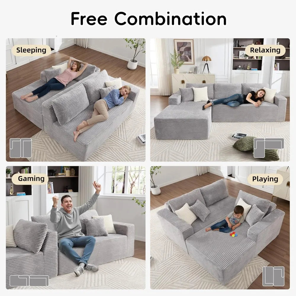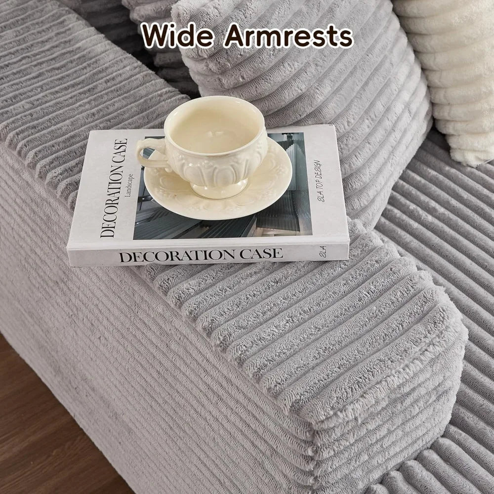 Shaped Modular Sectional Sofa Oversized Chaise Plush Corduroy
