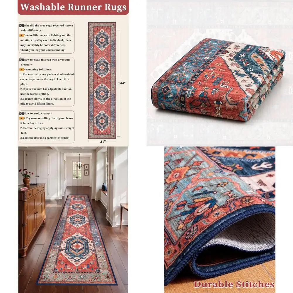 Long Bohemian Runner Rug Soft Washable Non Slip