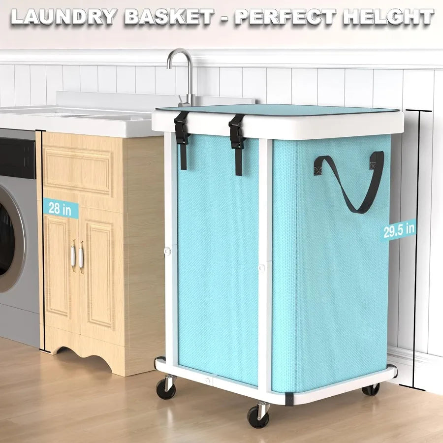 150L Gal Large Fashion Laundry Basket with Wheels Leather