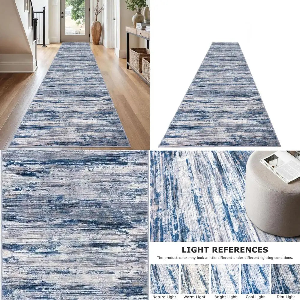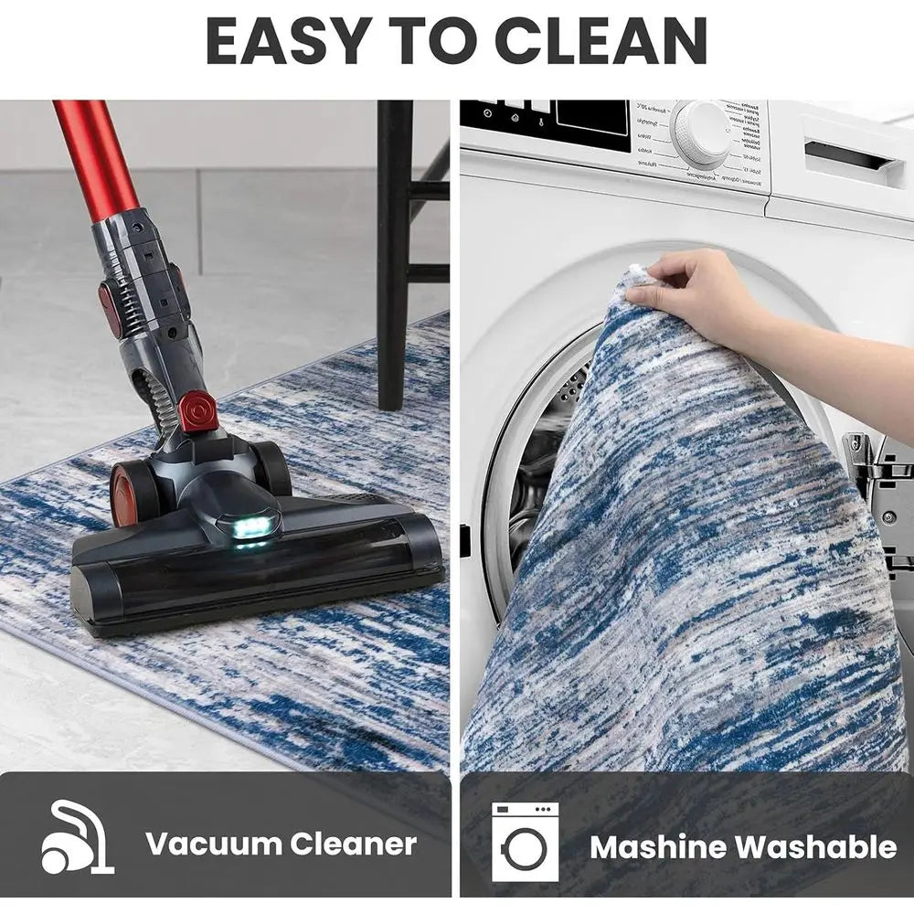 Navy Blue Gray Abstract Runner Rug Super Soft