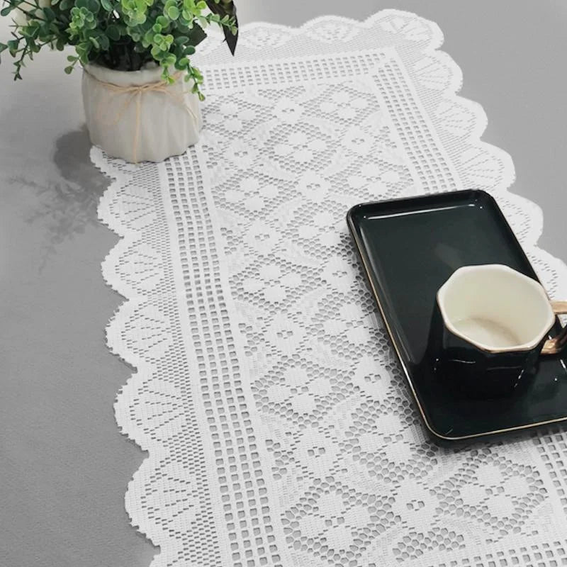 43x93-Inch 1pc European Style Minimalist White Lace Tablecloth Suitable
