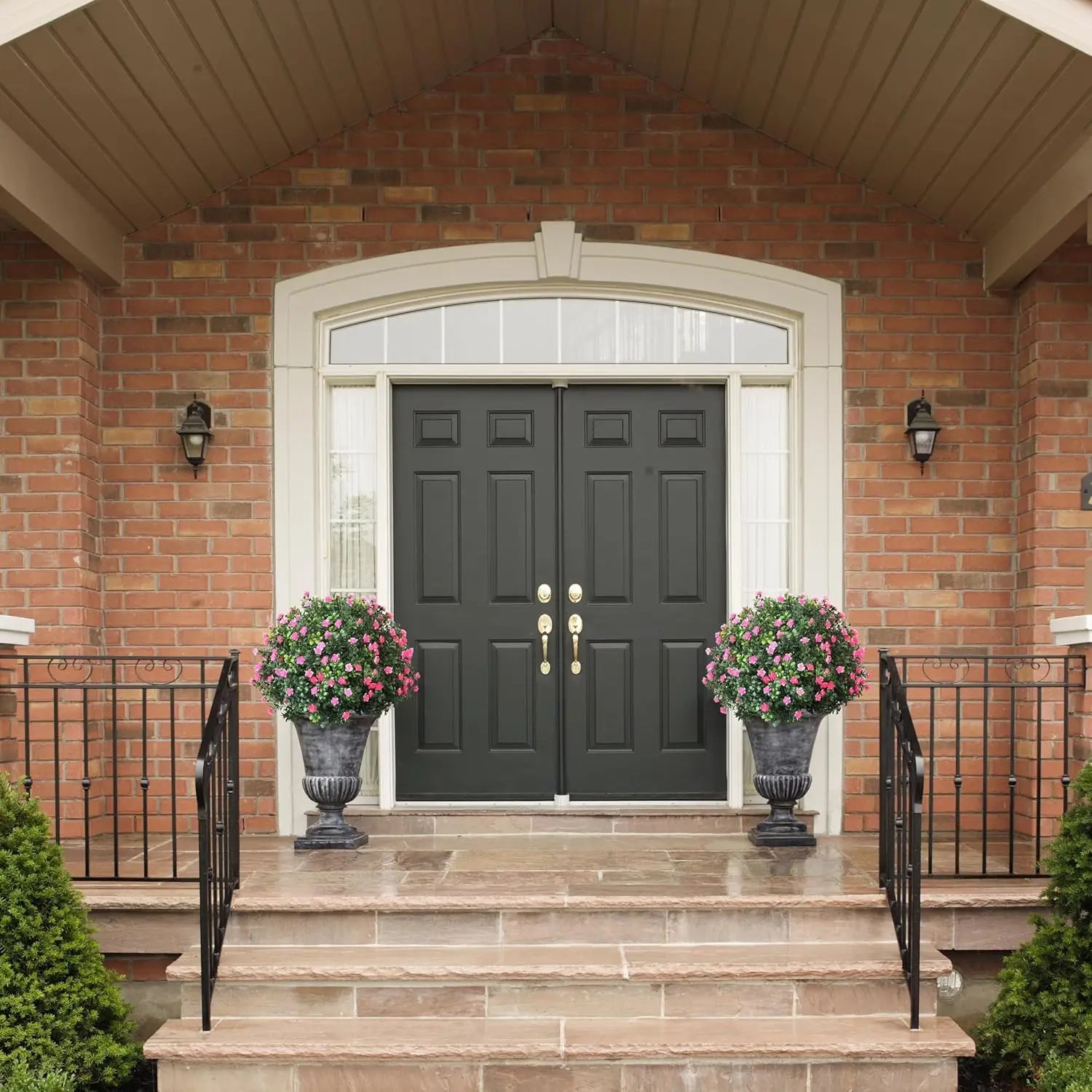 Pack Artificial Boxwood Topiary Ball Plant with Pink