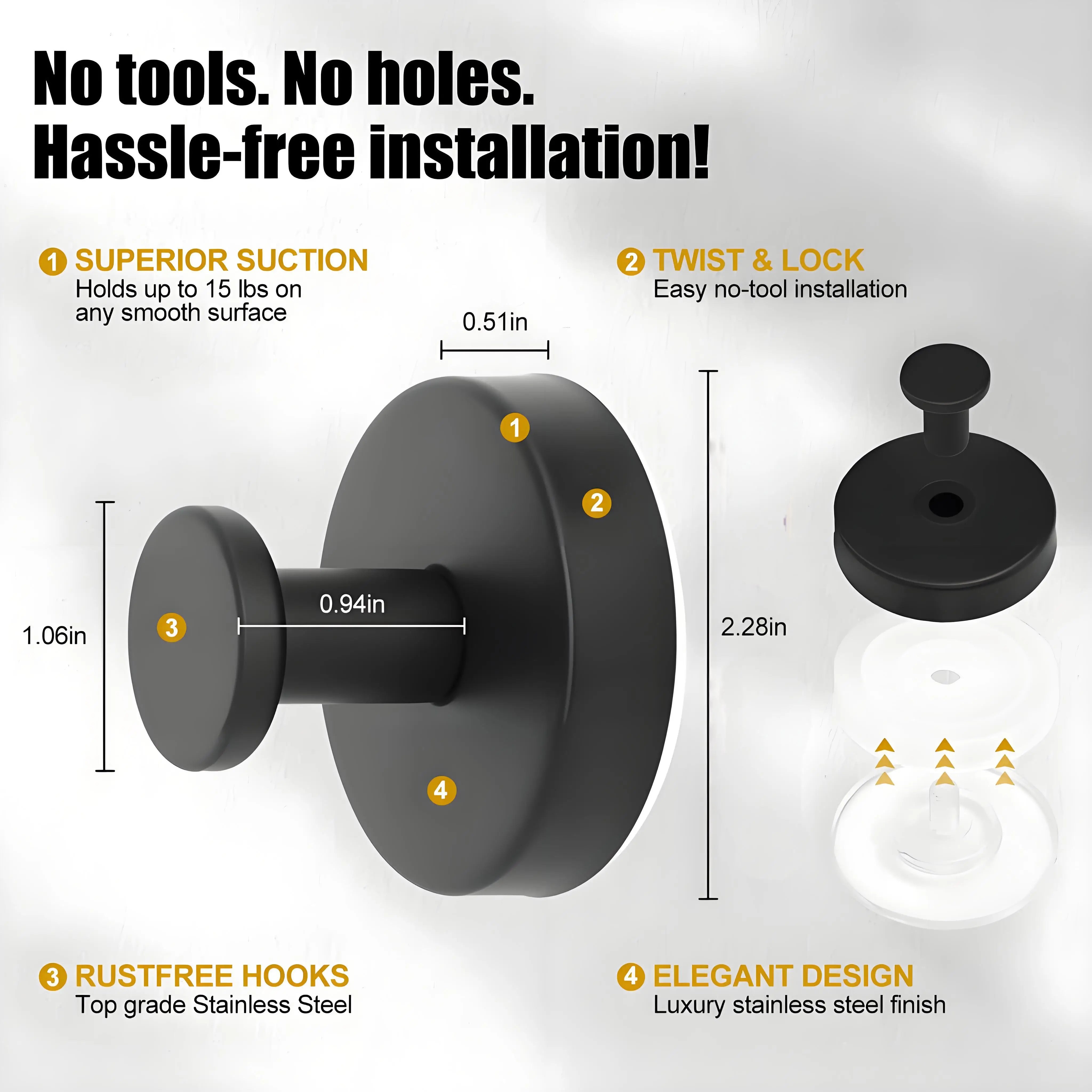 2pcs Suction Cup Hooks for Shower Bathroom Hanging