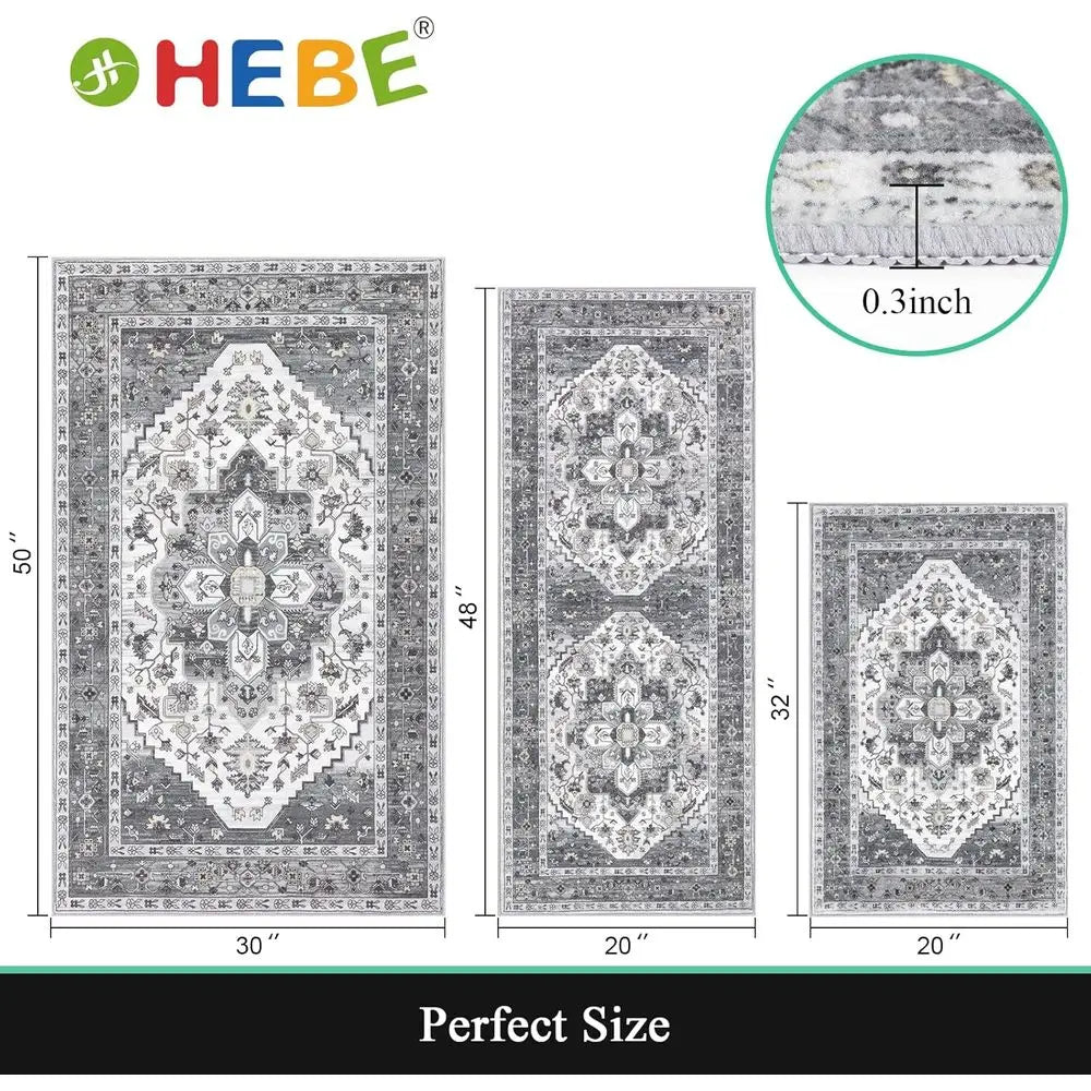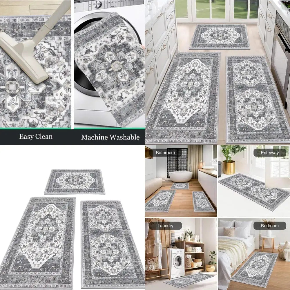 Piece Boho Kitchen Rug Set with Runner Non Slip