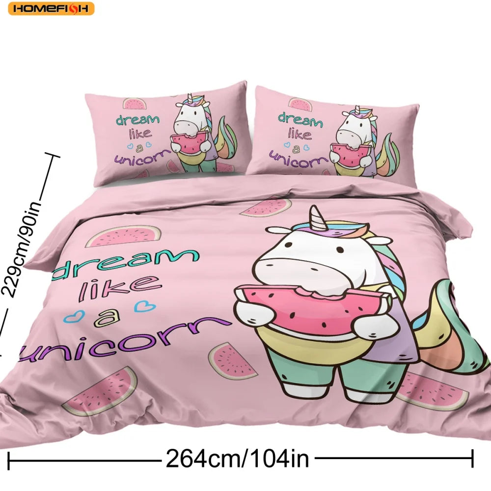 Pieces Unicorn Watermelon Duvet Cover Set for Comforter