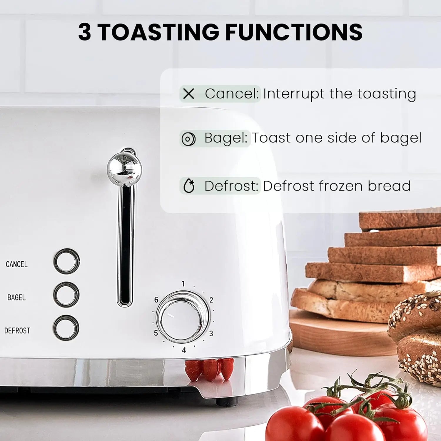 Slice Toaster Retro Stainless Steel with Bagel Defrost