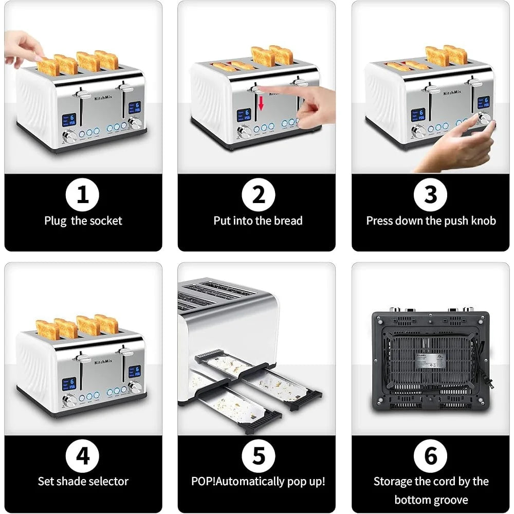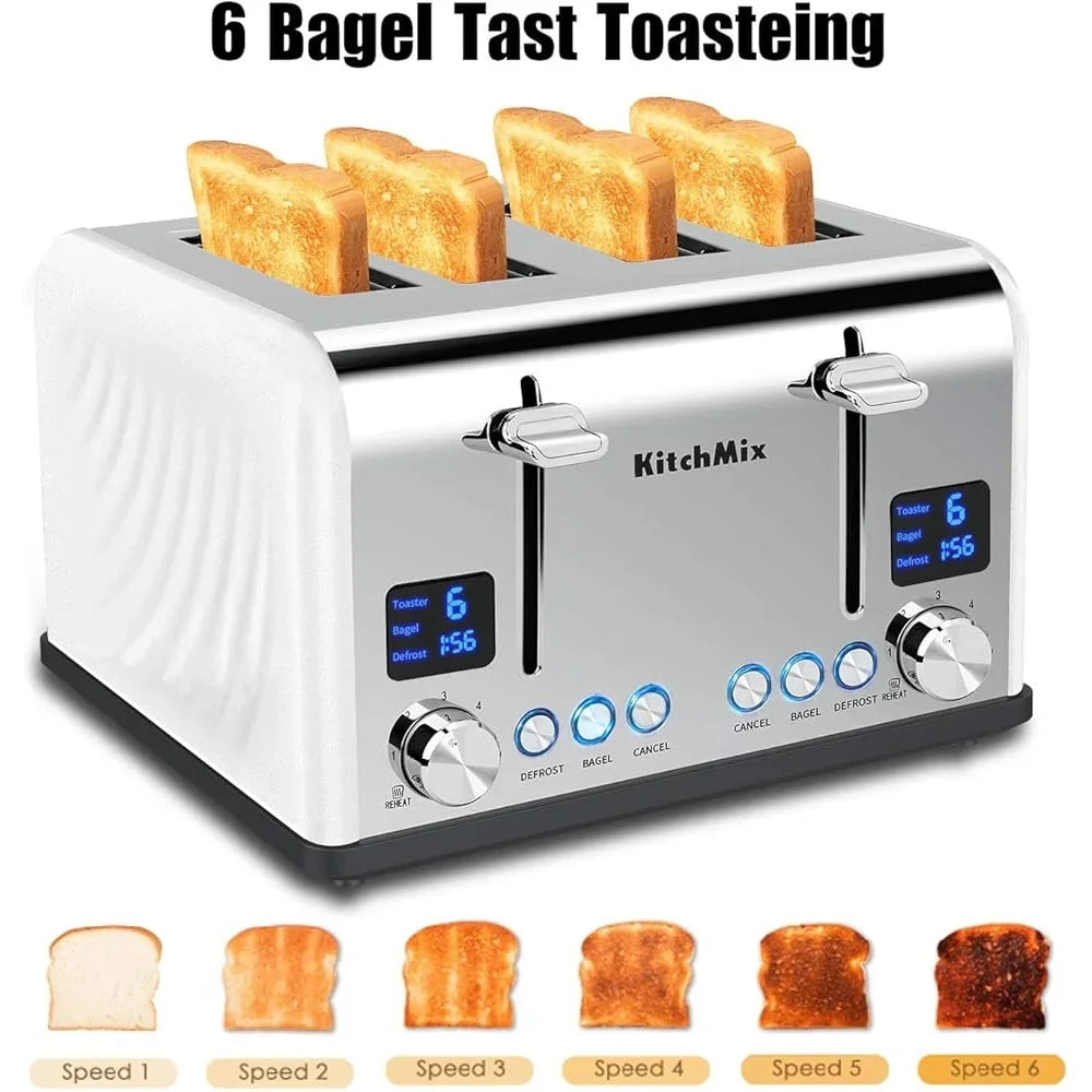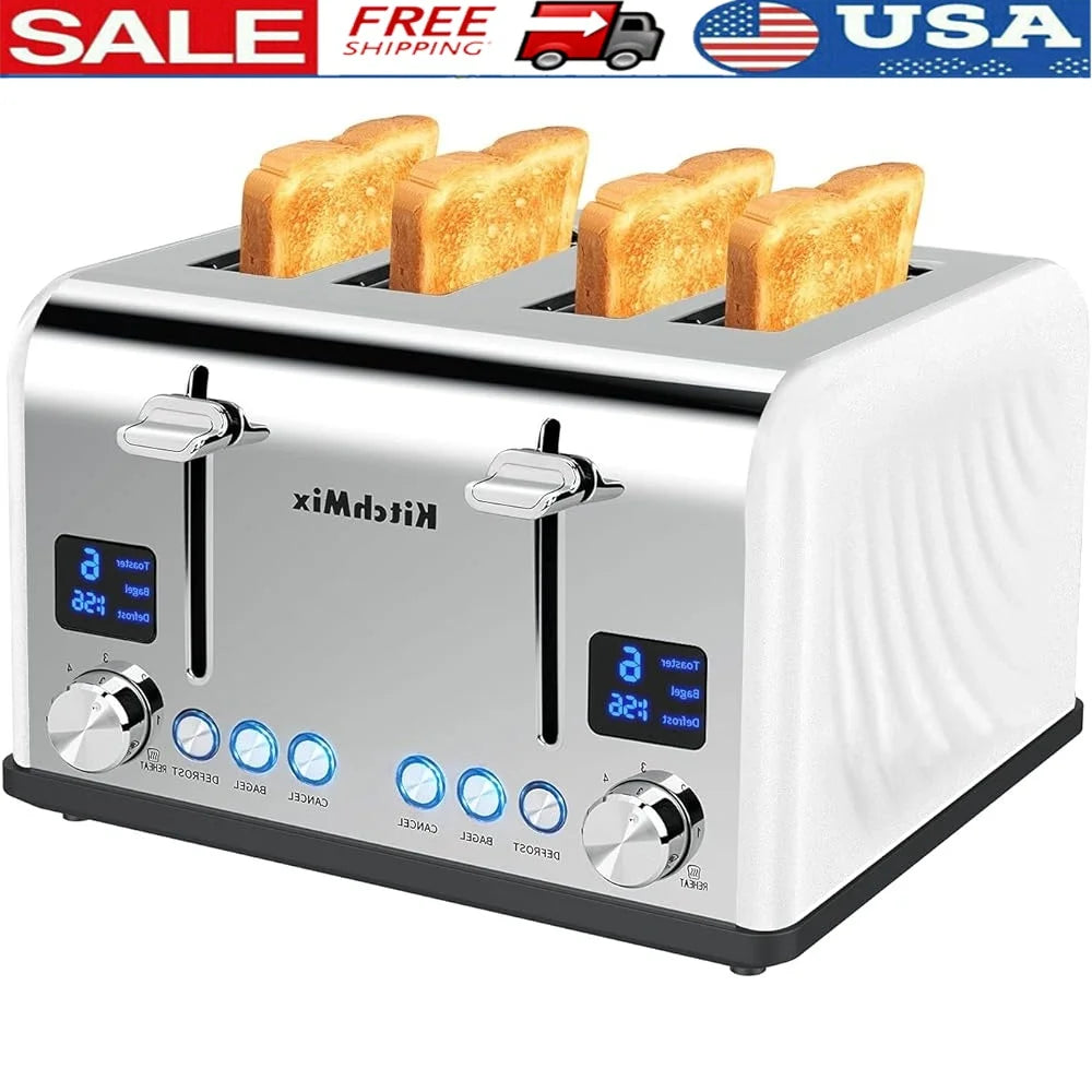Slice Toaster with Lcd Display Dual Control Stainless