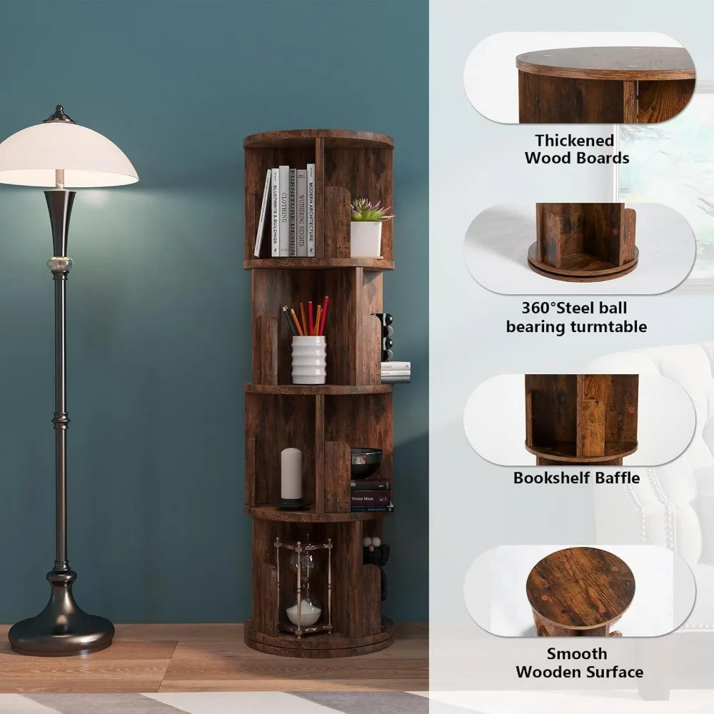 Tier Swivel Bookshelf Space Saving Corner Storage for Home