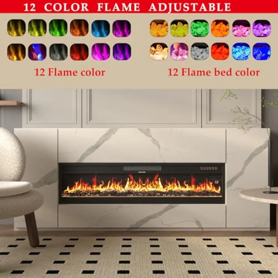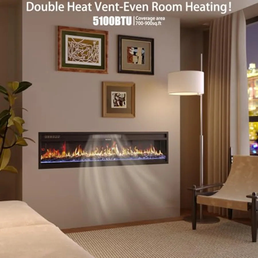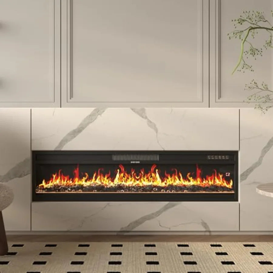 Inch Electric Fireplace Wall Mounted and Recessed Heater