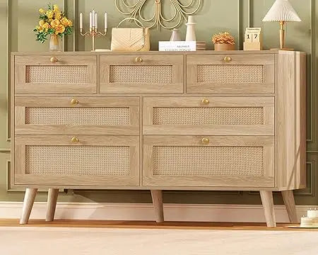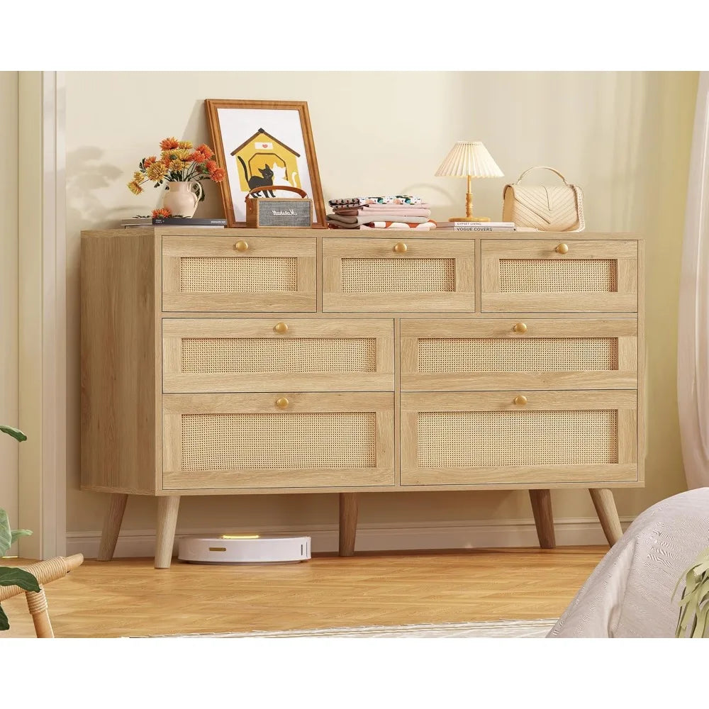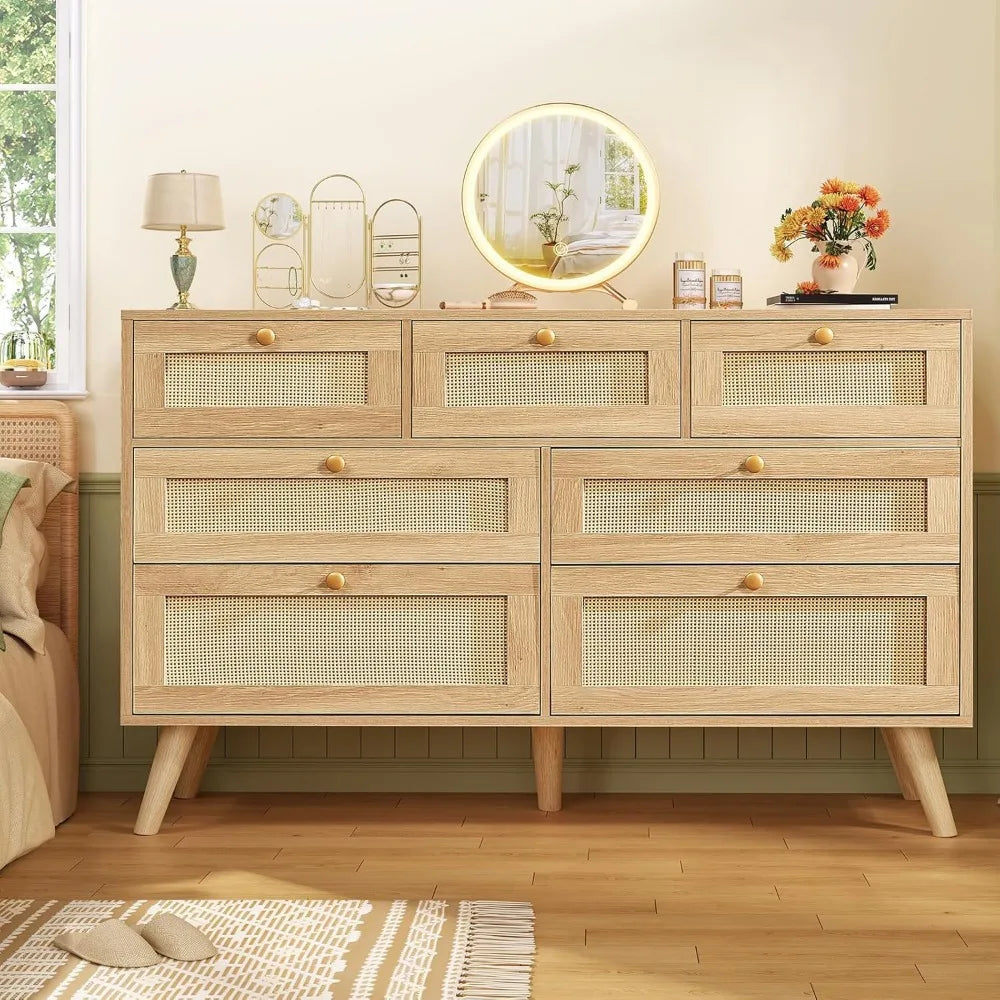 2wide Drawer Rattan Dresser Boho for Bedroom Chest