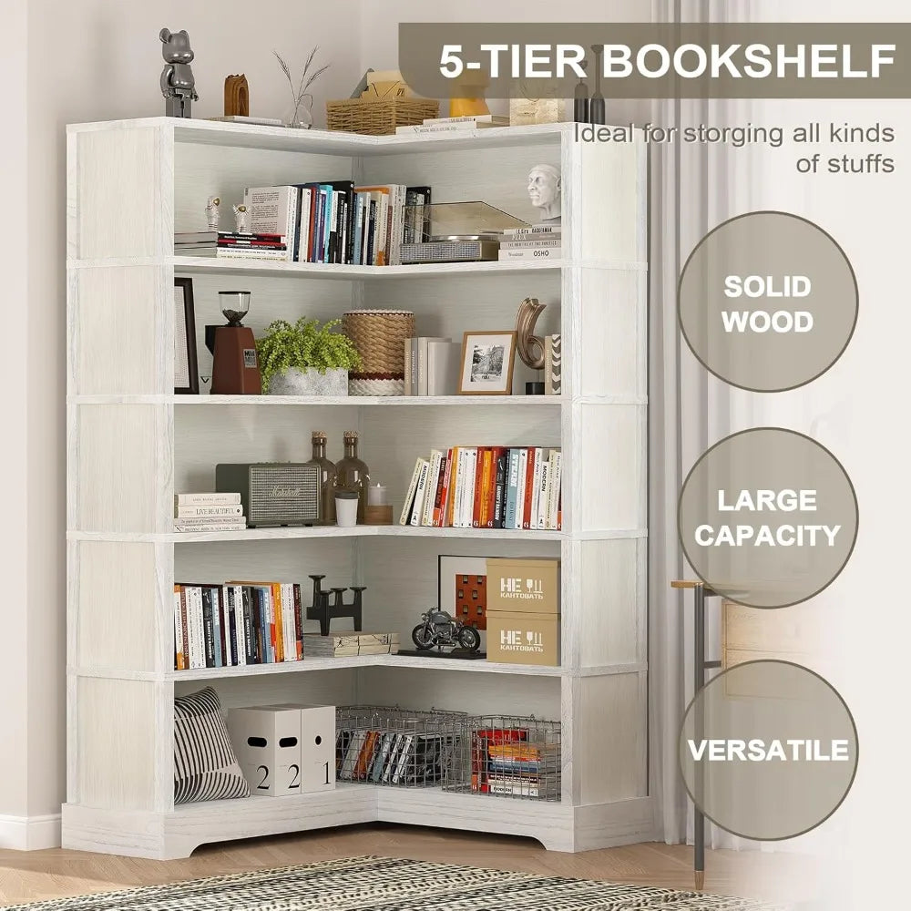 Tier 65-Inch Inch Tall Corner Bookshelf with Storage Floor Standing