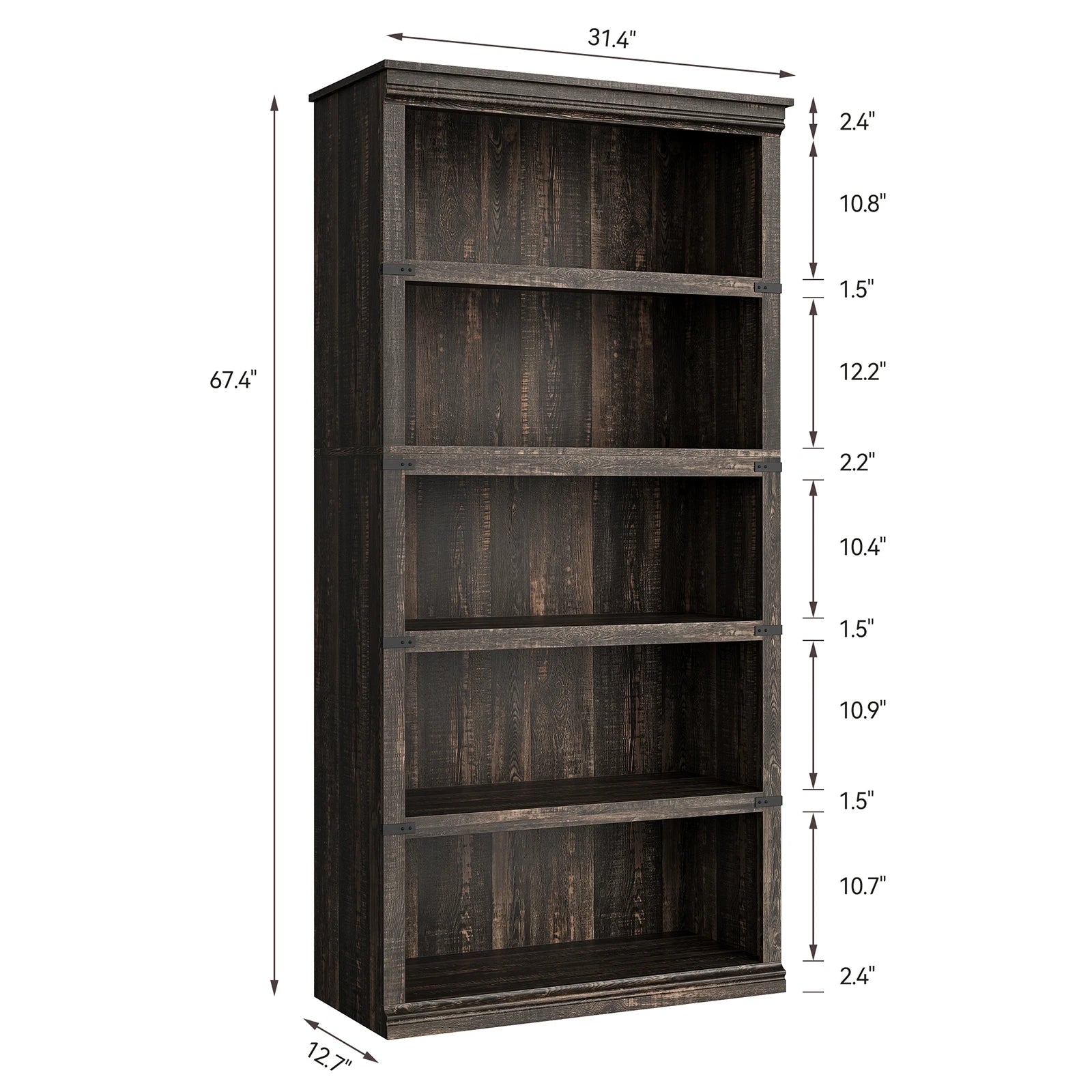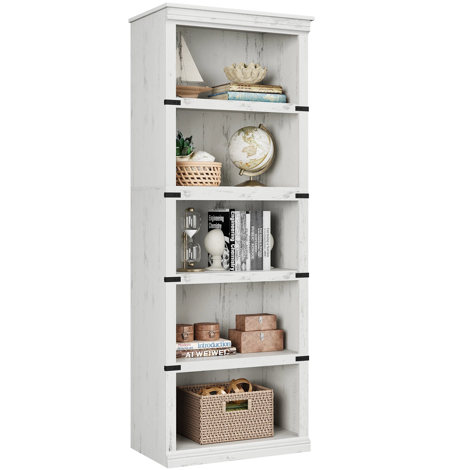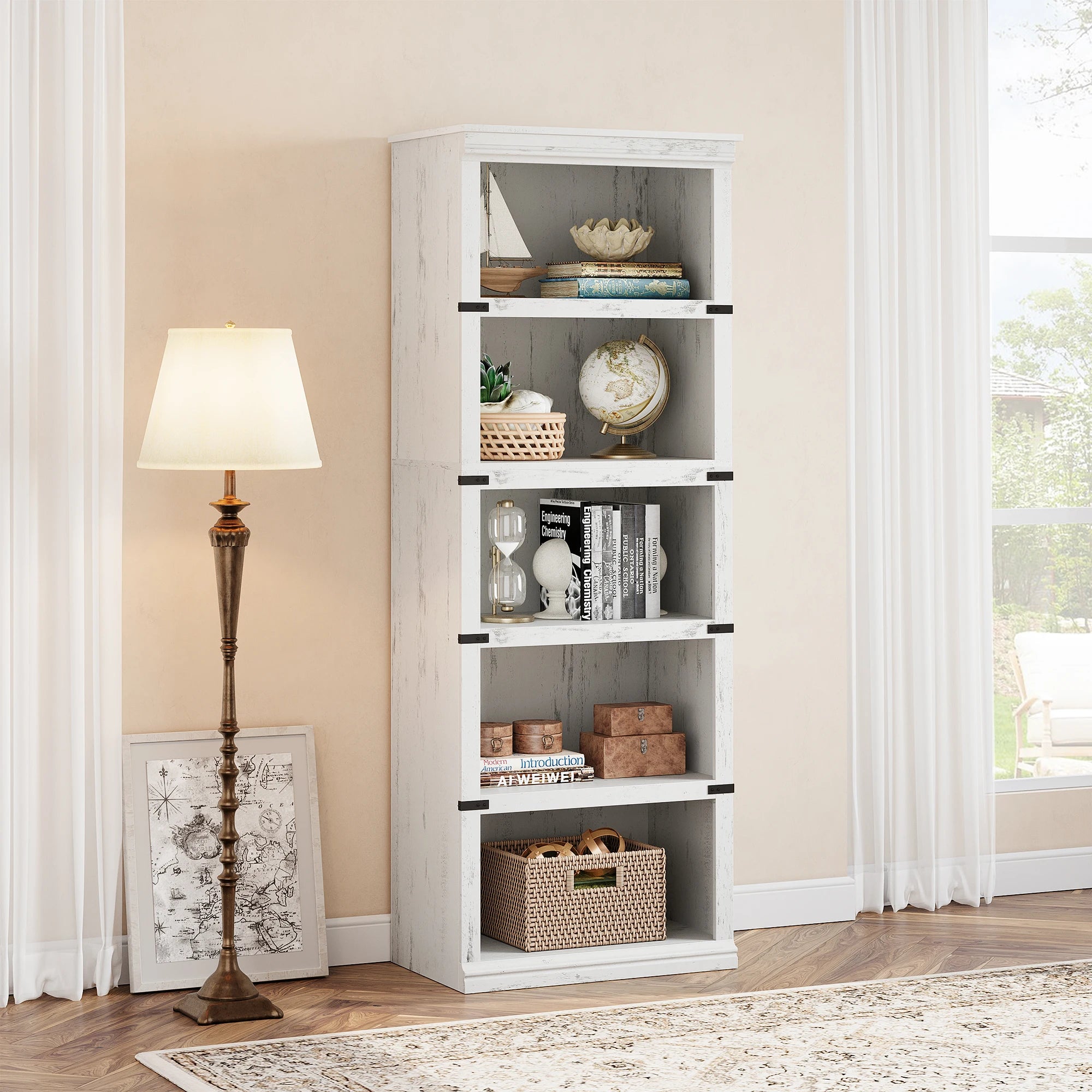The 333", farmhouse design of this bookshelves makes it a versatile addition to any room. The built-in storage lets you store items inside to reduce clutter.
