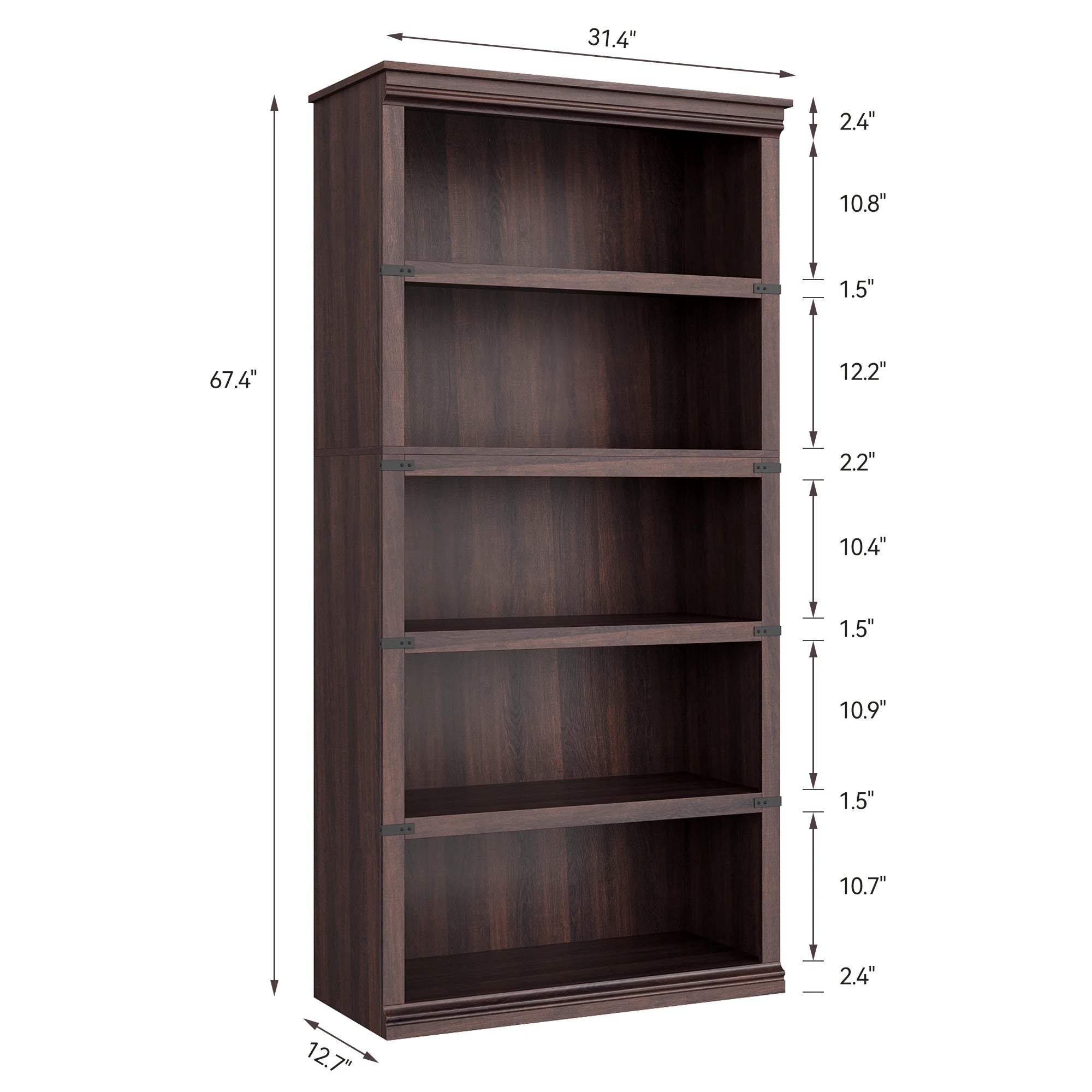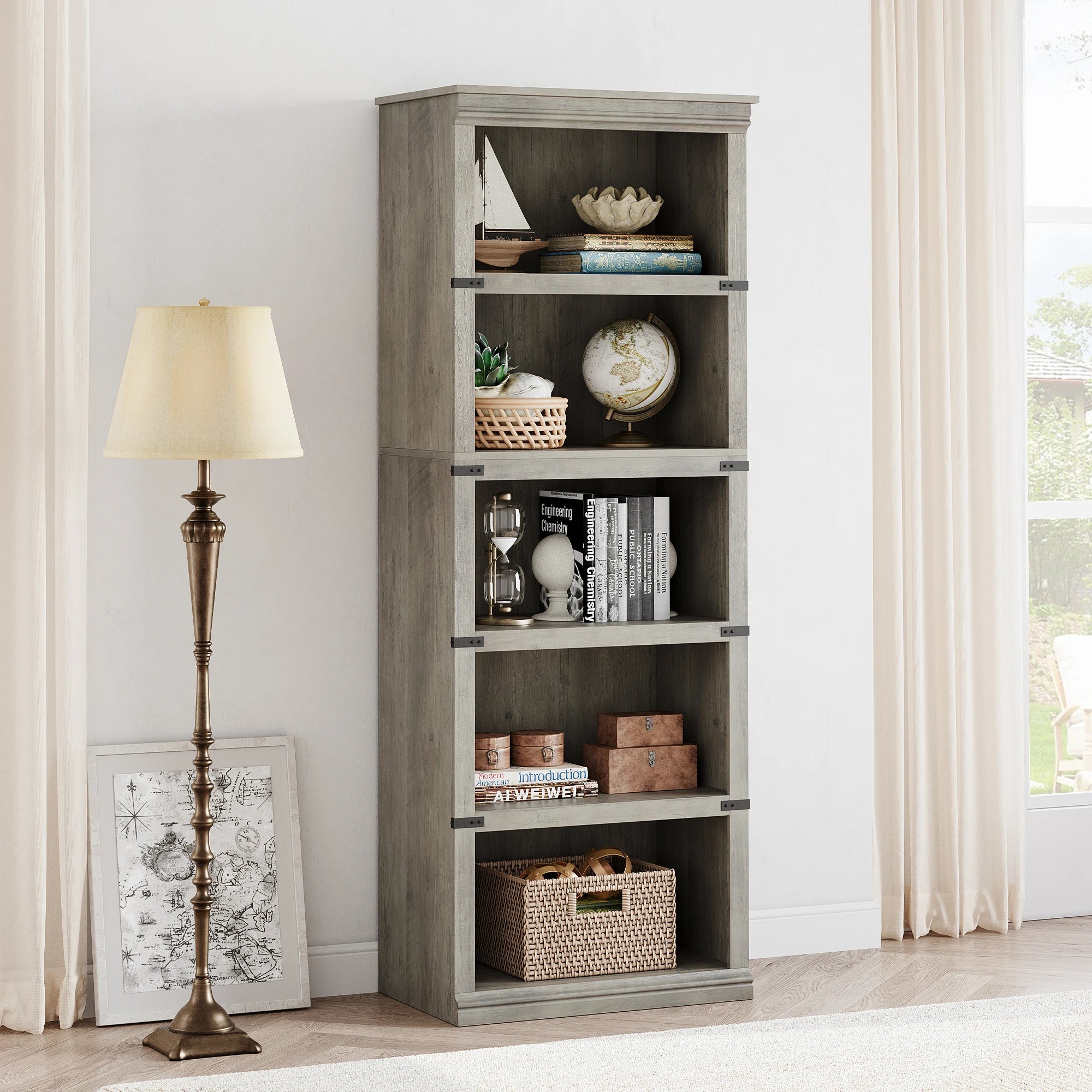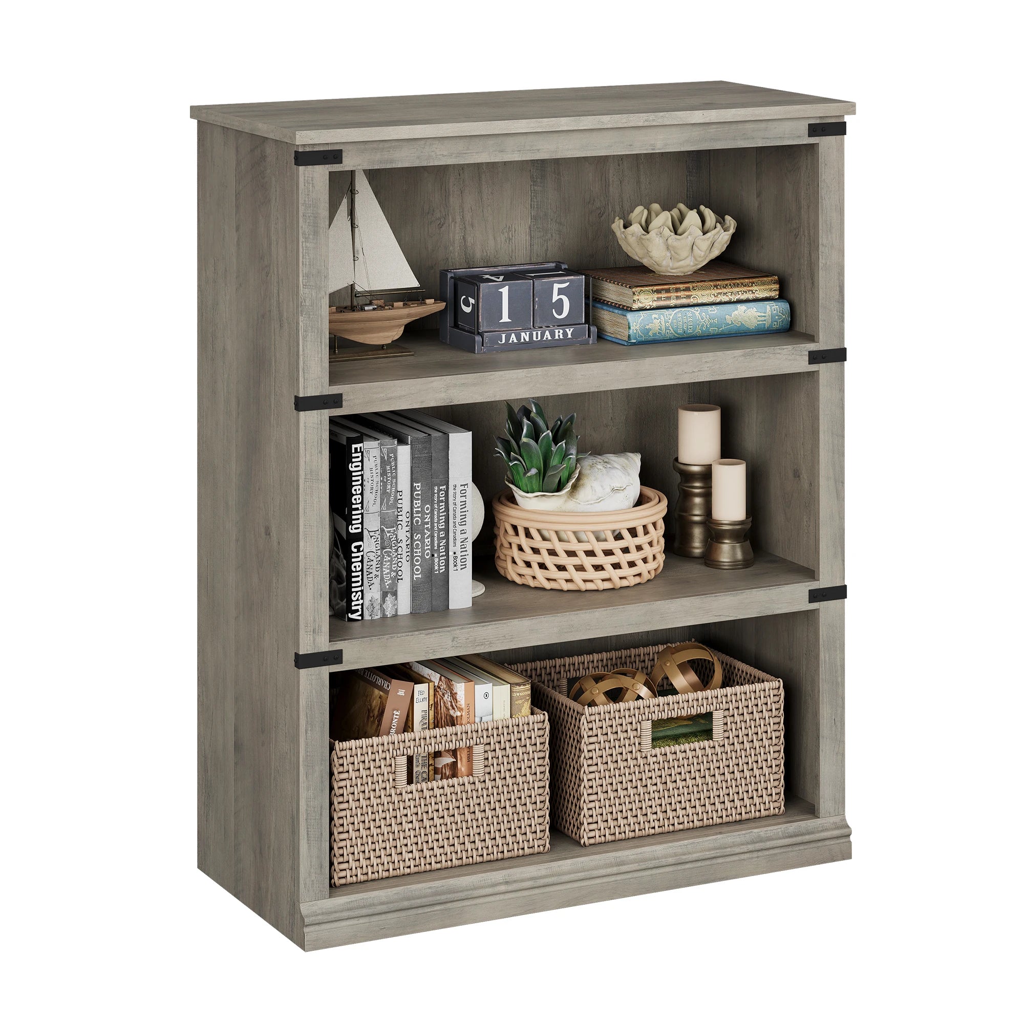 The 333", farmhouse design of this bookshelves makes it a versatile addition to any room. The built-in storage lets you store items inside to reduce clutter.